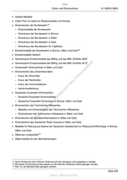 Offen Orden und Ehrenzeichen A1-2630/0-9804 • Goethe-Medaille • Orden Pour le mérite für Wissenschaften und Künste • Ehrenzeichen der Bundeswehr 141 + Ehrenmedaille der Bundeswehr + Ehrenkreuz der Bundeswehr in Bronze + Ehrenkreuz der Bundeswehr in Silber + Ehrenkreuz der Bundeswehr in Gold + Ehrenkreuz der Bundeswehr für Tapferkeit • Einsatzmedaille der Bundeswehr in Bronze, Silber und Gold 142 • Einsatzmedaille Gefecht • Gemeinsame Einsatzmedaille des BMVg und des BMI „Fluthilfe 2002“ • Gemeinsame Einsatzmedaille des BMVg und des BMI „Fluthilfe 2013“ st en • Grubenwehr-Ehrenzeichen in Silber und Gold sd i • Ehrenzeichen des Johanniterordens ng ru + Kreuz der Ehrenritter de Än + Kreuz der Rechtsritter m + Kreuz der Kommendatoren de ht + Herrenmeisterkreuz ic tn • Deutsches Feuerwehr-Ehrenzeichen eg + Deutsche Feuerwehr-Ehrenmedaille rli te un + Deutsches Feuerwehr-Ehrenkreuz in Bronze, Silber und Gold k uc • Ehrenzeichen des Technischen Hilfswerkes dr + Medaille zum Ehrenzeichens des Technischen Hilfswerkes us rA + Ehrenzeichen des Technischen Hilfswerkes in Silber und Gold se • Ehrenzeichen der Bundesverkehrswacht in Silber und Gold D ie • Ehrenzeichen des Deutschen Roten Kreuzes in Silber und Gold • Medaille für Rettung aus Seenot der Deutschen Gesellschaft zur Rettung Schiffbrüchiger in Bronze, Silber und Gold • Silbernes Lorbeerblatt 143 • Silbermedaille für den Behindertensport 141 Nach Verleihung einer höheren Stufe braucht die niedrigere nicht abgelegt zu werden. 142 Bei diesen Ehrenzeichen darf jeweils nur die höchste verliehene Stufe getragen werden. 143 Darf nur als Bandschnalle getragen werden. Seite 225 Stand: Oktober 2018