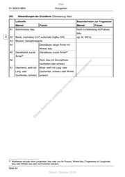 Offen A1-2630/0-9804 Anzugarten 240. Abwandlungen der Grundform (Dienstanzug, blau) Luftwaffe Besonderheiten zur Trageweise Männer Frauen Männer Frauen A1 Schirmmütze, blau Nicht in Verbindung mit Pullover, blau. Ä A2 Barett, marineblau (LUT außerhalb OrgBer CIR) vgl. Nr. 402 b) A3 Blouson, Ganzjahresjacke A4 Dienstbluse, langer Ärmel mit Winkel, blau 29 A5 Diensthemd, kurzer Dienstbluse, kurzer Ärmel 29 Ärmel A6 Rock, blau mit Strumpfhose, st hautfarben oder schwarz en , sd i A7 Oberhemd, weiß mit Bluse, weiß mit Lang- oder ng Lang- oder Querbinder, schwarz oder Winkel, ru Querbinder, schwarz schwarz de Än m de ht ic tn eg rli te un k uc dr us rA se ie D 29 Wahlweise mit oder ohne Langbinder, blau oder (nur für Frauen), Winkel blau (Trageweise mit Langbinder, blau oder Winkel, blau darf nicht befohlen werden). Seite 44 Stand: Oktober 2018
