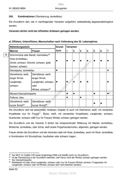 Offen A1-2630/0-9804 Anzugarten 245. Kombinationen (Dienstanzug, dunkelblau) Die Grundform darf, wie in nachfolgenden Varianten aufgeführt, selbstständig abgewandelt/ergänzt werden. Varianten dürfen nicht bei offiziellen Anlässen getragen werden. a) Offiziere, Unteroffiziere, Mannschaften nach Vollendung des 30. Lebensjahres Bekleidungsstück Grund- Varianten Männer Frauen form 1 2 3 4 5 6 7 Ä Schirmmütze oder Barett, marineblau 39 Hose dunkelblau; • • • • • st • • • Gürtel, schwarz; Schuhe, schwarz, glatt; en Socken, schwarz sd i Dienstjacke, dunkelblau • ng ru • Diensthemd, weiß, Dienstbluse, weiß, de langer Ärmel; langer Ärmel; Än Langbinder, Langbinder, schwarz • • de m • • • • schwarz oder ht 40 ic Winkel, schwarz tn Blouson/Ganzjahresjacke eg rli • • • • 41 Pullover, blau un te • • Diensthemd, weiß, Dienstbluse, weiß, • • k 42 uc 42 kurzer Ärmel kurzer Ärmel dr us Die Grundform darf bei bestimmten Anlässen (Kapitel 3) auch mit Oberhemd, weiß, mit verdeckter rA se Knopfleiste (nur für Frauen - Bluse, weiß, mit versteckter Knopfleiste); Langbinder, schwarz; ie Querbinder, schwarz oder (nur für Frauen) Winkel, schwarz getragen werden. D Die Grundform und die Variante 3 dürfen bei entsprechender Witterung mit Mantel, dunkelblau, Wollschal, dunkelblau, oder Schal, weiß sowie Fingerhandschuhen, allgemein, getragen werden. Frauen dürfen die Grundform und die Varianten statt mit Hose, dunkelblau, auch mit Rock, dunkelblau in Kombination mit Strumpfhose, hautfarben oder schwarz tragen. 39 Nur MUT im OrgBer CIR sowie Angehörige KSM und SeeBtl (nicht zur Grundform). 40 Ist der Dienstanzug in der Grundform befohlen, darf hierzu nicht der Winkel, schwarz getragen werden. 41 Nur Ganzjahresjacke. 42 Wahlweise mit oder ohne Langbinder, schwarz oder (nur für Frauen) Winkel, schwarz (Trageweise mit Langbinder, schwarz oder mit Winkel, schwarz darf nicht befohlen werden). Seite 52 Stand: Oktober 2018