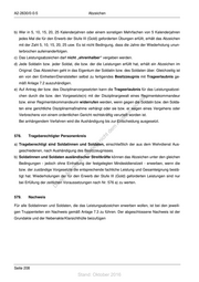 A2-2630/0-0-5 Abzeichen b) Wer in 5, 10, 15, 20, 25 Kalenderjahren oder einem sonstigen Mehrfachen von 5 Kalenderjahren jedes Mal die für den Erwerb der Stufe III (Gold) geforderten Übungen erfüllt, erhält das Abzeichen mit der Zahl 5, 10, 15, 20, 25 usw. Es ist nicht Bedingung, dass die Jahre der Wiederholung unun- terbrochen aufeinanderfolgen. c) Das Leistungsabzeichen darf nicht „ehrenhalber“ vergeben werden. d) Jede Soldatin bzw. jeder Soldat, die bzw. der die Leistungen erfüllt hat, erhält ein Abzeichen im Original. Das Abzeichen geht in das Eigentum der Soldatin bzw. des Soldaten über. Gleichzeitig ist ein von den Einheiten/Dienststellen selbst zu fertigendes Besitzzeugnis mit Trageerlaubnis ge- mäß Anlage 7.2 auszuhändigen. e) Auf Antrag der bzw. des Disziplinarvorgesetzten kann die Trageerlaubnis für das Leistungsabzei- chen durch die bzw. den Vorgesetzte(n) mit der Disziplinargewalt eines Regimentskommandeur st en bzw. einer Regimentskommandeurin widerrufen werden, wenn gegen die Soldatin bzw. den Solda- sd i ten eine gerichtliche Disziplinarmaßnahme verhängt oder sie bzw. er wegen eines Vergehens oder ng ru Verbrechens von einem ordentlichen Gericht rechtskräftig verurteilt worden ist. de Bei anhängendem Verfahren wird die Aushändigung bis zur Entscheidung ausgesetzt. Än m de 578. Trageberechtigter Personenkreis ht ic tn a) Trageberechtigt sind Soldatinnen und Soldaten, einschließlich der aus dem Wehrdienst Aus- eg rli geschiedenen, nach Aushändigung des Besitzzeugnisses. te un b) Soldatinnen und Soldaten ausländischer Streitkräfte können das Abzeichen unter den gleichen k Bedingungen - jedoch ohne Einhaltung der festgelegten Mindestdienstzeit - erwerben, wenn die uc dr bzw. der zuständige Vorgesetzte die entsprechende fachliche Leistung und Gesamteignung bestä- us rA tigt hat. Wiederholungen der für den Erwerb der Stufe III (Gold) geforderten Leistungen sind nur se bei Erfüllung der zeitlichen Voraussetzungen nach Nr. 576 a) zu werten. ie D 579. Nachweis Für alle Soldatinnen und Soldaten, die das Leistungsabzeichen erwerben wollen, ist bei den jeweili- gen Truppenteilen ein Nachweis gemäß Anlage 7.3 zu führen. Der abgeschlossene Nachweis ist der Grundakte und der Nebenakte/Klarsichthülle beizufügen Seite 208 Stand: Oktober 2016