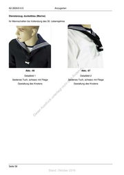 A2-2630/0-0-5 Anzugarten Dienstanzug, dunkelblau (Marine) für Mannschaften bis Vollendung des 30. Lebensjahres st en sd i ng Abb.: 66 ru Abb.: 67 de Detailbild 1 Än Detailbild 2 Seidenes Tuch, schwarz mit Fliege m Seidenes Tuch, schwarz mit Fliege de Gestaltung des Knotens ht Gestaltung des Knotens ic tn eg rli te un k uc dr us rA se ie D Seite 58 Stand: Oktober 2016