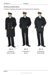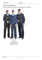 A2-2630/0-0-5 Anzugarten Dienstanzug, dunkelblau (Marine) für Offiziere, Unteroffiziere, Mannschaften nach Vollendung des 30. Lebensjahres st en sd i ng ru de Än m de ht ic tn eg rli te un k uc dr us rA se Abb.: 56 ie Abb.: 57 Abb.: 58 D mit Ergänzung: mit Abwandlung: mit Abwandlung: Mantel, dunkelblau Blouson Ganzjahresjacke Seite 54 Stand: Oktober 2016