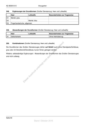 A2-2630/0-0-5 Anzugarten 248. Ergänzungen der Grundformen (Großer Dienstanzug, Heer und Luftwaffe) Heer Luftwaffe Besonderheiten zur Trageweise E1 Mantel, grau E2 Mantel, blau E3 Fingerhandschuhe, allgemein 249. Abwandlungen der Grundformen (Großer Dienstanzug, Heer und Luftwaffe) Heer Luftwaffe Besonderheiten zur Trageweise A1 Gefechtshelm Ohne Helmüberzug 250. Kombinationen (Großer Dienstanzug, Heer und Luftwaffe) st en sd i Die Grundformen des Großen Dienstanzuges dürfen auf Befehl auch ohne Dienstjacke/Schibluse, ng grau oder mit Diensthemd/Dienstbluse, kurzer Ärmel, getragen werden. ru de Weitere, selbstständige Ergänzungen / Abwandlungen der Grundformen des Großen Dienstanzuges Än sind nicht zulässig. m de ht ic tn eg rli te un k uc dr us rA se ie D Seite 60 Stand: Oktober 2016