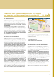 Entwicklung eines Flächenmanagement-Tools zur Erfassung und Bewertung von Flächenpotenzialen im Innenbereich BO_06 Die Herausforderung Die Offenhaltung beziehungsweise Entsiegelung von Böden, die zur Unterstützung der Klimawandelanpassung anzustreben ist, wird vor allem im Rahmen der Flächenhaushaltspolitik der Städte und Gemeinden über die Flächennutzungs- und Bauleit planung gesteuert. Ein wirkungsvoller strategischer Ansatz zum Flächensparen ist dabei die konsequente Nutzung von Flächenpotenzialen in Innerortslagen. Dadurch kann die Bebauung im Außenbereich reduziert und können Böden, die für die Kaltluftentstehung sowie die Aufnahme und Speicherung von Wasser bedeutsam sind, geschont werden. Darüber hinaus trägt die Innenentwick lung zur Belebung der Innenorte bei. Ziel von FLOO-Thüringen ist es, die Aktivierung vorhandener Flächenpo tenziale zu fördern. Das Tool ermöglicht einen detaillierten Überblick beispielsweise über Baulücken, Brachflächen, leer stehende Gebäude oder Wer ist aktiv und was wird getan? geringfügig genutzte Flächen. Um die Flächeninanspruchnahme zielführend, das heißt im Klimafolgenmonitoring: Sinne einer Bevorzugung der Innen- vor der Außenentwicklung, R-RL-1 Siedlungs- und Verkehrsfläche zu steuern, ist eine gute Übersicht über vorhandene Flächen potenziale im Innenbereich erforderlich. Das TMIL unterstützt in Zusammenarbeit mit der Thüringer Landgesellschaft mbH (ThLG) die Städte und Gemeinden zu diesem Zwecke mit der Be Was wurde erreicht und wie geht es weiter? reitstellung eines einfach nutzbaren informationstechnischen Werkzeugs zur Erfassung und Bewertung von Flächenpoten Mit der Anpassung von FLOO für Thüringen wurde im Januar zialen sowohl im Innen- als auch im Außenbereich (Flächen 2017 begonnen. Nach im Februar 2018 erfolgreich abgeschlos management-Tool FLOO-Thüringen). Mit dem Werkzeug werden sener Pilotphase steht das Tool nun allen interessierten Kom die zur Erfassung und Bewertung erforderlichen Geobasisdaten munen kostenlos zur Verfügung. des Amtlichen Liegenschaftskatasterinformationssystems Die Akademie ländlicher Raum hat im Februar und März 2018 (ALKIS) sowie ausgewählte Geofachdaten der TLUG bereitge eine Veranstaltungsreihe zur Einführung von FLOO-Thüringen stellt und Hilfen für die systematische Dokumentation und organisiert und vier regionalen Informationsveranstaltungen Einstufung der Flächen gegeben. durchgeführt. Allgemeine und technische Informationen in Form Das Thüringer Tool nutzt Vorarbeiten aus Baden-Württemberg. von Vorträgen zum Tool werden derzeit auch auf der Homepage Es hilft Anwenderinnen und Anwendern, die Innenentwicklungs der Akademie ländlicher Raum zur Verfügung gestellt: potenziale in ihrer Gemeinde zu erfassen, darzustellen, zu be www.alr-thueringen.de. werten, zu verwalten und handlungsbezogen auszuwerten. Die Nach der Einführung des Flächenmanagement-Tools begleitet Kommune hat diese aktuellen Informationen dann jederzeit für die ThLG den weiteren Prozess der Anwendung. Sie bewirbt die Bauleitplanung, die Arbeit im Gemeinderat, die Kontakte mit die Anwendung und steht den Städten und Kommunen in der Investorinnen und Investoren oder für raumbezogene Verwal Anwendung beratend und unterstützend zur Seite. tungsverfahren und für sonstige Fälle der Flächeninanspruch nahme verfügbar. Die Nutzung dieser Potenziale leistet einen Zugang zum Flächenmanagement-Tool FLOO-Thüringen: Beitrag zum Flächensparen und zur Offenhaltung von Böden. 73