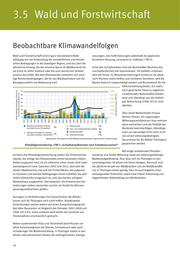 3.5 Wald und Forstwirtschaft Beobachtbare Klimawandelfolgen Wald und Forstwirtschaft sind in ganz besonderem Maße nutzungen, das heißt Nutzungen außerhalb der geplanten abhängig von der Entwicklung der standörtlichen und klimati forstlichen Nutzung, verursacht (s. Indikator I-FW-3). schen Bedingungen in der jeweiligen Region, und das über die Jahrzehnte hinweg, die der einzelne Baum im Waldbestand bis Unter den Schadinsekten sind die Borkenkäfer (Buchdrucker zur Ernte im reifen Stadium oder bis zum natürlichen Zerfalls und Kupferstecher) die relevantesten. Sie befallen insbeson prozess durchlebt. Mit dem Klimawandel verändern sich wich dere die Fichte. Zu Massenvermehrungen kommt es vor allem tige Rahmenbedingungen, die für das Waldwachstum und die nach Stürmen sowie heißen und trockenen Sommern, weil die Baumgesundheit von Bedeutung sind. Bäume dadurch vorgeschädigt wurden und Brutmaterial für die Käfervermehrung bieten. Ein statis tisch gesicherter Trend zu allgemein zunehmenden Borkenkäferschäden lässt sich allerdings aus der bisheri gen Betrachtung (1990-2015) nicht ableiten. Über akute Waldschäden hinaus können Phasen mit ungünstigen Witterungsverhältnissen über mehrere Jahre nachwirken und die Vitalität der Bestände beeinträchtigen. Allerdings kann aus derzeitiger Sicht noch nicht von einem witterungsbedingten Dauerstress für die Wälder Thüringens gesprochen werden. Klimafolgenmonitoring: I-FW-3 „Schadholzaufkommen nach Schadensursachen“ Mit länger anhaltenden Perioden Im Fokus der Klimafolgenbetrachtung stehen die Fichtenreinbe trockener und heißer Witterung steigt die witterungsbedingte stände, die infolge des Klimawandels einem besonders hohen Waldbrandgefährdung. Dies lässt sich für Thüringen in den Risiko ausgesetzt sind, da sie vielerorts schon heute nicht mehr zurückliegenden 50 Jahren mit Daten belegen. Dennoch sind standortgerecht sind. Zwischen 2002 und 2012, dem Jahr der die jährliche Anzahl von Waldbränden und die Waldbrandflä letzten Waldinventur, hat sich die Fichtenfläche, die aufgrund che in Thüringen bisher gering. Dies ist auch Ergebnis einer zu trockener und warmer Bedingungen einem erhöhten bis sehr wirkungsvollen Prävention sowie einer frühen Erkennung und hohen Klimarisiko ausgesetzt ist, trotz des bereits erfolgten abgestimmten Bekämpfung von Waldbränden. Waldumbaus ausgeweitet. Das bedeutet, die klimatischen Ver änderungen wirken momentan rascher als forstliche Klimaan passungsmaßnahmen greifen. Aussagen zu Veränderungen der Zuwachsraten der Wälder lassen sich für Thüringen noch nicht treffen. Bundesweite Entwicklungen weisen jedoch auf einen Zuwachsrückgang bei fast allen Baumarten im Vergleich der Perioden 2002-2008 und 2008-2012 hin. Unter anderem wird hierfür die Zunahme von Trockenjahren verantwortlich gemacht. Neben zunehmender Hitze und Trockenheit beeinflussen vor allem Extremereignisse wie Stürme, Schneebruch oder auch Schaderreger die Waldentwicklung. In Thüringen haben in den letzten zwei Jahrzehnten Stürme die umfangreichsten Zwangs 76