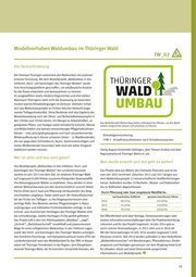 Modellvorhaben Waldumbau im Thüringer Wald FW_02 Die Herausforderung Der Freistaat Thüringen unterstützt den Waldumbau mit praxisori entierter Forschung. Mit dem Modellprojekt „Waldumbau in den mittleren, Hoch- und Kammlagen des Thüringer Waldes“ wurde eine Forschungsplattform geschaffen, um waldbauliche Ansätze für die Praxis entwickeln und demonstrieren zu können. Im ausgewählten relativ niederschlagsreichen und eher kühlen Naturraum Thüringens steht nicht die Anpassung an besonders trocken-warme Klimabedingungen im Zentrum. Vielmehr richtet sich das Waldumbauprojekt an Fichten falscher Herkunft (soge nannte Tieflagenherkünfte). Diese Bestände sind das Ergebnis der Wiederbewaldung nach der Orkan- und Borkenkäferkatastrophe in den 1940er und 1950er Jahren. Ein Mangel an Arbeitskräften, an Das Modellprojekt Waldumbau liefert umfangreiches Wissen, um den Wald geeigneten Pflanz- und Saatgut sowie klimatische Extreme, Mäuse- umbau zielgerichtet planen und umsetzen zu können. und Wildschäden und damals vernachlässigte Pflegemaßnahmen führten – trotz prinzipiell gelungener und hoch anzuerkennender Klimafolgenmonitoring: Wiederaufforstung in diesen schweren Zeiten – zu Waldbeständen, I-FW-3 Schadholzaufkommen nach Schadensursachen die nun gegenüber Schneebruch, Sturm, Starkniederschlägen und hohen Wildbeständen besonders labil sind und daher dringend stabilisiert werden müssen. Georg-August-Universität Göttingen, dem Thünen-Institut und dem Regionalverbund Thüringer Wald e.V. um. Wer ist aktiv und was wird getan? Was wurde erreicht und wie geht es weiter? Das Modellprojekt „Waldumbau in den mittleren, Hoch- und Kammlagen des Thüringer Waldes“ der Landesforstanstalt Das Projekt wird aus Mitteln des Freistaats finanziert und ist bis startete im Jahr 2013 mit dem Ziel, im mittleren Thüringer Wald zum Jahr 2022 terminiert. Zwischen 2013 und 2017 gingen aus auf insgesamt 8.000 Hektar zusammenhängender Staatswaldflä dem Waldumbauprojekt 12 wissenschaftliche Veröffentlichungen che klimaangepasste Wälder zu etablieren. Dazu werden in einer hervor. Außerdem wurden 10 Bachelor-, Master- und Doktorarbei aktiven Waldumbauzone pro Jahr durchschnittlich rund 60 Hektar ten zu Teilthemen abgeschlossen. Fläche direkt durch Saat und Pflanzung mit Baumarten des Berg Durch Pflanzung oder Saat umgebaute Waldfläche: mischwaldes umgebaut. Dabei spielt auch der Herkunftswechsel real bearbeitete Teilfläche gesamte beeinflusste Fläche bei der Fichte von Tieflagen- zu Hochlagenprovenienzen eine 2014 49,55 ha 147,02 ha wichtige Rolle. Des Weiteren werden Pflegestrategien in Natur 2015 31,45 ha 123,92 ha verjüngungen und mittelalten Fichtenbeständen verfolgt. In den 2016 79,75 ha 223,67 ha schnee- und sturmreichen Hochlagen des Thüringer Waldes wird die schmalkronige, stabile Hochlagen-Fichte gezielt gefördert. Die Öffentlichkeit wird über Vorträge, Försterwanderungen oder Das Projekt will in den vier Arbeitspaketen „Waldbau“, „Jagd“, andere Informationsveranstaltungen über die Projektentwicklung „Technik“, „Betriebswirtschaft“ modellhaft und praxisorientiert informiert und für das Projekt begeistert. Im Jahr 2014 gab es Wege für einen erfolgreichen Waldumbau in den mittleren Lagen sechs solcher Veranstaltungen, in 2015 zehn und in 2016 elf. sowie den Hoch- und Kammlagen des Thüringer Waldes aufzeigen. Mit den Veranstaltungen im Jahr 2016 wurden insgesamt 5.850 Das Forstliche Forschungs- und Kompetenzzentrum Gotha (FFK) der Personen erreicht. Seit 2016 werden außerdem in den Herbstferien Landesforstanstalt setzt das Modellprojekt für das TMIL in Koope „Walderlebniswochen“ mit Wanderungen, Pflanzaktionen, Kinder ration mit Thüringer Forstämtern in der Region, dem Biosphären programm und Vorträgen gemeinsam mit dem Ringberg-Hotel-Suhl reservat Thüringer Wald, der Technischen Universität Dresden, der für Urlauber, Gäste und lokal Interessierte ausgerichtet. Informationen zum Modellprojekt: 79