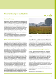 Wiedervernässung von Feuchtgebieten NA_02 Die Herausforderung Natürliche und naturnahe Feuchtgebiete und Moore können gro ße Mengen an Wasser speichern und damit wichtige Pufferfunk tionen im Landschaftswasserhaushalt übernehmen. Dies spielt vor allem bei zunehmenden Witterungsextremen (Starknieder schlägen und Trockenheit) eine bedeutende Rolle. Größere Feuchtgebiete entfalten außerdem Kühlwirkung auf ihr Umfeld. Zugleich müssen Feuchtgebiete unter den Bedingungen des Klimawandels in besonderer Weise geschützt werden, da sie einerseits klimasensiblen Arten Lebens- und Rückzugsraum bie ten, andererseits aber auch einem wachsenden Trockenstress ausgesetzt sind. (s. Teil 4, S. 148) Die im Klimawandelzusammenhang immer wieder diskutierte Im Alperstedter Ried werden die Feuchtflächen durch robuste ganzjährig Leistung der Moore für die CO2-Speicherung ist für den Klima weidende Tiere offengehalten, um den natürliche Wasserhaushalt aufrecht schutz relevant, nicht aber für die Klimawandelanpassung. zu erhalten. Wer ist aktiv und was wird getan? extensive Beweidung. Das Maßnahmengebiet selbst setzt sich aus dem Naturschutzgebiet mit rund 101 Hektar und einer Puf In Thüringen werden seit fast 20 Jahren Projekte zur Renaturie ferfläche zu den umliegenden ackerbaulich genutzten Landwirt rung von Mooren und Feuchtgebieten durchgeführt. Im Waldbe schaftsflächen von circa 55 Hektar zusammen. Diese Pufferflä reich wurden durch die Landesforstverwaltung in Abstimmung chen erweitern als neuangelegtes, artenreiches Grünland die mit den Naturschutzbehörden sowohl großflächige Hochmoore Beweidungsfläche und lösen die klimaschädliche Ackernutzung wie das Saukopf-, Schützenberg- und Beerbergmoor sowie die auf entwässerten Niedermoorböden ab. Schneekopfmoore entlang des Rennsteigs als auch Hangver sumpfungsmoore wie Marktal und Morast bei Frauenwald und Was wurde erreicht und wie geht es weiter? der Kerngrundsumpf bei Oberhof renaturiert. In den renaturier ten Mooren werden nun neben kleineren Nachbesserungsar Im Projekt „Moorlandschaft Alperstedter Ried“ der Stiftung beiten regelmäßig Pflegemaßnahmen und ein Monitoring zur Naturschutz Thüringen wird nach langjährigen Vorarbeiten Erfolgskontrolle durchgeführt. seit 2015 die Wiedervernässung des Riedes im Rahmen eines Außerhalb des Waldes gilt die Renaturierung des im Thüringer Flurbereinigungsverfahrens umgesetzt. Künstlich angelegte Becken im Landkreis Sömmerda gelegenen Alperstedter Rieds Entwässerungsgräben wurden geschlossen, eine regulierbare durch die Stiftung Naturschutz Thüringen als das ambitionier Stauanlage installiert, Feuchtmulden für Wiesenbrüter und teste Naturschutzprojekt Thüringens, das einen bedeutenden Amphibien angelegt sowie Weideinfrastruktur errichtet. Beitrag zum Natur-, Klima- und Hochwasserschutz leistet. Auf Im Oktober 2015 startete die extensive Ganzjahres-Beweidung grund seiner räumlichen Ausdehnung von über hundert Hektar zur Offenhaltung des wiedervernässten Moores mit Exmoor- spielt es für den Landschaftswasserhaushalt und das lokale Ponys. Später kamen karpatische Wasserbüffel sowie Rotes Klima eine auch für den Anpassungsprozess wichtige Rolle. Höhenvieh als robuste Rinderrasse hinzu. Getragen wird das Be Das Alperstedter Ried ist das größte Durchströmungs- und weidungsprojekt durch einen Zusammenschluss der örtlichen Kalkflachmoor Thüringens. Durch Entwässerungsmaßnahmen Landwirtschaftsbetriebe. in den letzten Jahrzehnten und den Wegfall der Grünlandnut Die Stiftung Naturschutz Thüringen trägt und begleitet das zung gingen wichtige naturschutzfachliche Qualitäten verloren. Vorhaben und investiert hier rund 540.000 Euro aus Mitteln der Ziel des Naturschutzprojekts war die möglichst weitgehende Ausgleichsabgabe. Wiederherstellung der natürlichen hydrologischen Verhältnisse und die dauerhafte Offenhaltung von Gehölzbewuchs durch Informationen zum Alperstedter Ried: 91