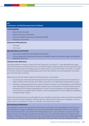 Maßnahmenverantwortlichkeit: - Immobilieneigentümer - Betreiber von Infrastruktureinrichtungen - Fachbereich Gebäudewirtschaft (GWH) - Wohnungsgenossenschaften und -gesellschaften, Bauvereine Zu beteiligende Akteure und Gremien: - abhängig von den Besitzverhältnissen der Gebäude ggf. Investoren oder städtische Gesellschaften Inves- toren, Träger öffentlicher Einrichtungen - Fachbereich Stadtentwicklung, -planung und Bauordnung bzw. städtebauliche Sanierung, Stadtumbau oder Soziale Stadt im Rahmen der kommunalen Planungshoheit. - Stadtentwicklungsausschuss, Fachausschuss GWA Mobilisierungspotential: - hoch, da über Subventionen zusätzliche Anreize geschaffen werden können. Möglicher Investitionsbedarf, Folgekosten und Fördermöglichkeiten: - Gering bis mittel, da in der Regel mit den Projekten/Maßnahmen multifunktionale Ziele verbunden sind, so dass die Investitionen nicht durch die positiven Effekte für die Klimaanpassung anfallen, sondern auf- grund anderer städtebaulicher Erfordernisse (z.B. Wohnumfeldverbesserung, Sanierung) getätigt werden. - Fördermöglichkeit über die Soziale Stadt Wehringhausen Querbezüge: - Synergien ergeben sich zu den Maßnahmen Nr. 1, 5, 9, 11 und 13 Relevante Grundlagen und Daten: - Klimaanalyse und Planungshinweise (Stadtklima) - Mikroskalige Modellierung des Stadtklimas (ENVI-met) 120 Integriertes Klimaanpassungskonzept Stadt Hagen