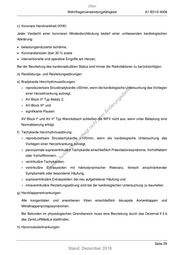 Offen Wehrfliegerverwendungsfähigkeit A1-831/0-4008 Koronare Herzkrankheit (KHK) Jeder Verdacht einer koronaren Minderdurchblutung bedarf einer umfassenden kardiologischen Abklärung: • belastungsinduzierte Ischämie, • Koronarstenosen über 30 % sowie • interventionelle und operative Eingriffe am Herzen. Bei der Beurteilung des kardiovaskulären Status sind immer die Risikofaktoren zu berücksichtigen. Reizbildungs- und Reizleitungsstörungen e) Bradykarde Herzrhythmusstörungen: + reproduzierbare Sinusbradykardie <50/min, wenn die kardiologische Untersuchung das Vorliegen t. ns einer Herzerkrankung aufzeigt, ie sd + AV Block II° Typ Mobitz 2, ng + AV-Block III° und ru de + signifikante Pausen. Än m de AV Block I° und AV II° Typ Wenckebach schließen die WFV nicht aus, wenn unter Belastung eine Normalisierung erfolgt. icht tn Tachykarde Herzrhythmusstörung: eg te + reproduzierbare Sinustachykardie >100/min, wenn die kardiologische Untersuchung das rli un Vorliegen einer Herzerkrankung aufzeigt, k uc + paroxysmale supraventrikuläre Tachykardie einschließlich Präexitationssyndrome, Vorhofflattern dr oder Vorhofflimmern, us rA + ventrikuläre Tachykardien, se + ventrikuläre D ie Extrasystolen mit hämodynamischer Relevanz, klinisch einschränkender Symptomatik oder besonderer Häufung, + supraventrikuläre Extrasystolen: bei neu aufgetretener Häufung und + intraventrikuläre Reizleitungsstörung sind bei der kardiologischen Untersuchung zu beurteilen. Herzklappenerkrankungen: Alle kongenitalen und erworbenen Vitien einschließlich bikuspide Aortenklappen und Mitralklappenprolapssyndromen. Bei Befunden im physiologischen Grenzbereich muss eine Beurteilung durch das Dezernat II 3 b des ZentrLuRMedLw stattfinden. Herzmuskelerkrankungen: Seite 29 Stand: Dezember 2018