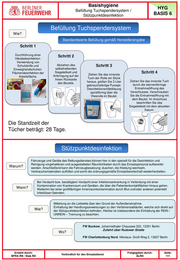 Basishygiene HYG Befüllung Tuchspendersystem / Stützpunktdesinfektion BASIS 6 Befüllung Tuchspendersystem Wie? Standardisierte Befüllung gemäß Herstellerangabe. Schritt 1 Durchführung einer Schritt 2 Händedesinfektion. Verwendung von Schutzbrille und Abziehen des Schritt 3 Einweghandschuhen. selbsthaftenden Flächendesinfektion der Siegeletikett und Ziehen Sie das innerste Schritt 4 Arbeitsfläche. Anbringung auf der freien Rückseite Tuch der Rolle ein Stück heraus, gießen Sie 3 Liter Ziehen Sie das innerste Tuch des Beutels. gebrauchsfertige Pursept- durch die sternenförmige Desinfektionsmittellösung Entnahmeöffnung des spiralförmig über die Verschlusses. Verschrauben Vliesrolle im Beutel. Sie die Entnahmeöffnung mit dem Beutel. Im Anschluss beschriften Sie das Siegeletikett mit dem aktuellen Datum. Die Standzeit der Tücher beträgt: 28 Tage. Stützpunktdesinfektion Fahrzeuge und Geräte des Rettungsdienstes können hier in den speziell für die Desinfektion und Reinigung vorgehaltenen und ausgestatteten Räumlichkeiten durch das Einsatzpersonal aufbereitet Warum? werden. Anschließend kann die Fahrzeugbesatzung: duschen, die Kleidung wechseln, Verbrauchsmaterialien auffüllen und somit die ordnungsgemäße Einsatzbereitschaft wiederherstellen. Bei Verdacht bzw. bestätigtem Verdacht einer Infektionserkrankung in Verbindung mit einer Kontamination von Krankenraum und Geräten, die über die Patientenkontaktflächen hinaus gehen. Wann? Weiterhin bei einer großflächigen Innenraumkontamination durch Blut und/oder anderen potentiell infektiösen Sekreten. Mitteilung an die Leitstelle über den Grund der Außerdienstnahme. Einhaltung der Handlungsanweisungen zu den Verfahrensabläufen, welche sich direkt auf Wie? der Stützpunktdesinfektion befinden. Hierbei ist insbesondere die Einhaltung der REIN / UNREIN – Trennung zu beachten. FW Buckow, Johannisthaler Chaussee 222, 12351 Berlin Zufahrt über Rudower Straße Wo? FW Charlottenburg Nord, Nikolaus- Groß-Weg 2, 13627 Berlin Erstellt durch: Freigegeben durch: Seite: Verbindlich für den Einsatzdienst BFRA RN / Stab RD ÄLRD 111
