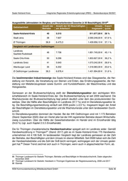 Saale-Holzland-Kreis Integriertes Regionales Entwicklungskonzept (IREK) – Bestandsanalyse 06/2021 Ausgewählte Jahresdaten im Bergbau und Verarbeitenden Gewerbe (≥ 50 Beschäftigte) 201986 Anzahl der Anzahl der SV-Beschäftigten Umsatz Export- Gebietseinheit Betriebe am Arbeitsort insgesamt quote Saale-Holzland-Kreis 40 5.515 911.677,00 € 28 % Stadt Jena 38 7.607 2.090.248,00 € 67,9 % Ø Thüringen 36,9 6.473,3 1.409.956,10 € 37,1 % Vergleich mit Landkreisen Ostthüringen Landkreis 46 7.736 1.851.745,00 € 45,1 % Saalfeld-Rudolstadt Saale-Orla-Kreis 50 9.296 1.853.827,00 € 36,2 % Landkreis Greiz 41 5.643 1.073.242,00 € 28,9 % Altenburger Land 35 6.202 1.318.983,00 € 20,6 % Ø Ostthüringer Landkreise 38,3 6.878,4 1.401.894,80 € 31,8 % Die bestimmenden Industriezweige des Saale-Holzland-Kreises sind das Glasgewerbe, die Her- stellung von Keramik, die Verarbeitung von Steinen und Erden, das Ernährungsgewerbe, die Her- stellung von Metallerzeugnissen sowie Gummi- und Kunststoffwaren, der Maschinenbau und das Holzgewerbe. Gemessen an der Bruttowertschöpfung stellt der Dienstleistungssektor den wichtigsten Wirt- schaftsbereich im Saale-Holzland-Kreis dar. Die Bruttowertschöpfung ist seit 2009 wachsend. Die Wachstumsrate der Bruttowertschöpfung liegt jedoch deutlich unter dem des produzierenden Ge- werbes. Über die Hälfte aller Beschäftigten im Landkreis (57,7 %) sind im Dienstleistungssektor tä- tig. Die Beschäftigungsentwicklung verläuft seit 2009 positiv (+3,5 %). Insgesamt liegen der Anteil der Beschäftigten im Dienstleistungssektor und die Wachstumsrate unter dem landesweiten Durch- schnitt. Im Dienstleistungssektor dominiert der Handel. Bei der IHK Ostthüringen sind mit 1.173 Betrieben (Stand: September 2020) über ein Viertel aller bei der IHK registrierten Betriebe diesem Wirtschafts- zweig zuzuordnen. Über die Hälfte der Gewerbetreibenden im Handel sind im Einzelhandel tätig (54,6 %) (vgl. auch Kapitel 2.5.3 Einzelhandel). Die für Thüringen charakteristische Handwerksstruktur spiegelt sich im Landkreis wider. Gemäß 87 Handwerkszählung in Thüringen (Stand: 2017) gibt es im Saale-Holzland-Kreis 775 Handwerks- unternehmen mit 4.106 SvB. Im landesweiten Vergleich liegt der Landkreis gemessen an der Zahl der Betriebe, den Beschäftigten und dem Umsatz im oberen Mittelfeld. Seit 2008 haben sich die Zahl der Handwerksbetriebe und die Zahl der SvB leicht verringert, wohingegen sich der Umsatz gestei- 88 gert hat. Dieser Trend zeichnet sich auch in Thüringen, wenn auch in abgeschwächter Form, ab. 86 Thüringer Landesamt für Statistik Thüringen, Betriebe und Beschäftigte im Monatsdurchschnitt, Daten abgerufen: November 2020 87 Thüringer Landesamt für Statistik: Handwerk in Thüringen Ergebnisse der Registerauswertung, 2008 und 2017 88 Ebenda KEM Kommunalentwicklung Mitteldeutschland GmbH Seite 46