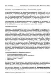 Saale-Holzland-Kreis Integriertes Regionales Entwicklungskonzept (IREK) – Bestandsanalyse 06/2021 ist. Diese Flächen sind als Bestandsflächen zu betrachten, die sich eher als Ergänzungs- oder Er- weiterungsflächen für bereits angesiedelte Betriebe, zur funktionellen Ergänzung des jeweiligen Ge- bietes (z. B. Stellplätze, (Ab-)Wasseraufbereitungsanlagen) oder als Reserve zur Ansiedlung von ergänzendem Handwerk und Dienstleistungen eignen. Angesichts stadtklimatischer Veränderungen in Folge des Klimawandels wäre als alternative Nutzung auch eine stärkere Begrünung der Gewer- begebiete, ggf. im Zuge von Ausgleichsmaßnahmen, vorstellbar. Gewerbe- und Industriegebiete im Saale-Holzland-Kreis Nr. Name Fläche Freie Fläche Auslas- gesamt Fläche belegt tung 1 Gewerbepark A4 Saaletal 4,2 ha 3,56 ha 0,6 ha 14,3 % 2 Bollberg 29,39 ha 12,4 ha 16,99 ha 57,8 % 3 Kahla/Camisch 45,8 ha 12,01 ha 33,79 ha 74,0 % 4 Bad Klosterlausnitz/Muna 31,0 ha 11 ha 20,00 ha 64,5 % 5 Bucha/OT Schorba Industriepark Am Amselberg* 15,8 ha 10,7 ha 5,1 ha 32,3 % 6 Hermsdorf/Tridelta II 50,3 ha 8,85 ha 41,45 ha 82,4 % 7 Petersberg/Kuhberg 29,16 ha 8,41 ha 20,75 ha 69,7 % 8 Camburg/Tümpling 20,0 ha 8 ha 12,00 ha 60,0 % 9 Eisenberg/Wiesen 22,0 ha 6 ha 16,00 ha 72,0 % 10 Bucha/Pösener Weg 15,9 ha 5,5 ha 10,40 ha 65,4 % 11 Laasdorf 16,0 ha 5,47 ha 10,53 ha 65,8 % 12 Serba 21,6 ha 5 ha 16,60 ha 76,9 % 13 Großlöbichau 12,0 ha 3,85 ha 8,15 ha 67,9 % 14 St. Gangloff/Wachtelberg 31,8 ha 3,64 ha 28,16 ha 88,5 % 15 Bürgel 10,3 ha 3,57 ha 6,73 ha 65,3 % 16 Hermsdorf/Ost I u. III 27,0 ha 3,38 ha 23,62 ha 87,5 % 17 Königshofen 17,57 ha 2,18 ha 15,39 ha 87,6 % 18 Zöllnitz/Lerchenfeld 6,84 ha 2,13 ha 4,71 ha 68,8 % 19 Crossen/Lange Wiese Rautenanger 22,8 ha 1,92 ha 20,88 ha 91,6 % 20 Schöps/Mittleres Saaletal (Privat) 4,26 ha 1,17 ha 3,09 ha 72,5 % 21 Reichenbach/West 19,3 ha 0,78 ha 18,52 ha 96,0 % 22 Mörsdorf/Trillersbüsche 32,55 ha 0 ha 32,55 ha 100 % 23 Eisenberg/Nord 26,0 ha 0 ha 26,00 ha 100 % 24 Hainspitz/An der alten Bahn** 17,2 ha 0 ha 17,2 ha 100 % 25 Bad Klosterlausnitz/An der Krümme 5,2 ha 0 ha 5,2 ha 100 % Gesamt 533,97 ha 119,52 ha 414,41 ha 77,6 % * Gemeinsamer Bebauungsplan der Gemeinden Bucha und Magdala (Landkreis Weimarer Land), nachfolgend sind nur Flächen im Saale-Holzland-Kreis aufgeführt ** Es handelt sich um ein Gewerbe- und Mischgebiet. KEM Kommunalentwicklung Mitteldeutschland GmbH Seite 54