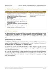 Saale-Holzland-Kreis Integriertes Regionales Entwicklungskonzept (IREK) – Bestandsanalyse 04/2021 199 Beteiligungsstruktur des Saale-Holzland-Kreises Neben der Wahrnehmung o. g. wichtiger öffentlicher Aufgaben leisten die Beteiligungsunternehmen des Landkreises einen wichtigen Beitrag zur regionalen Wirtschaftskraft und sind ein bedeutender Faktor für den lokalen und regionalen Arbeitsmarkt. Aktuell arbeiten fast 1.000 Beschäftigte in den Unternehmen, davon ca. 40 Auszubildende. Aufgabenbestand und -erfüllung Entsprechend §§ 87 und 88 ThürKO obliegt dem Saale-Holzland-Kreis die Erfüllung seiner Aufgaben im eigenen und übertragenen Wirkungskreis. Der eigene Wirkungskreis beinhaltet die Aufgaben hinsichtlich überörtlicher Angelegenheiten, deren Bedeutung nicht über die Grenzen des Kreisgebietes hinausgeht. Es wird diesbezüglich zwischen Pflichtaufgaben und freiwilligen Aufgaben differenziert. Bei den Pflichtaufgaben handelt es sich bei- spielsweise um die Sicherstellung des bodengebundenen Rettungsdienstes, die Aufgaben des Brandschutzes, der Schulverwaltung, Jugendhilfe und Abfallbeseitigung. Zu den freiwilligen Aufga- ben, die der Landkreis erfüllt, zählen die Sport- und Kulturförderung sowie die Kreisentwicklung. Der übertragene Wirkungskreis umfasst öffentliche Aufgaben des Staates oder anderer Körper- schaften des öffentlichen Rechts, welche durch Gesetz oder aufgrund eines Gesetzes von den Land- kreisen zu erfüllen sind. Dieser beinhaltet beispielsweise das Personenstandswesen, Namensrecht, Staatsangehörigkeitsrecht, Ausländerwesen, Waffenrecht, den Katastrophenschutz sowie den Ju- gendschutz. 199 Beteiligungsbericht des Saale-Holzland-Kreises für das Geschäftsjahr 2019 (2020) KEM Kommunalentwicklung Mitteldeutschland GmbH Seite 109