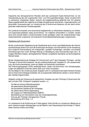 Saale-Holzland-Kreis Integriertes Regionales Entwicklungskonzept (IREK) – Bestandsanalyse 04/2021 Angesichts des demographischen Wandels steht das Landratsamt Saale-Holzland-Kreis vor der Herausforderung des sich zuspitzenden Fach- und Führungskräftemangels. Dieser Umstand führt zu zahlreichen unbesetzten Stellen, wodurch die Aufgabenerfüllung gefährdet wird. Ein weiteres Spannungsfeld betrifft die möglichst kurzfristige Herstellung der technischen, organisatorischen und personellen Voraussetzungen zur Umsetzung des E-Government-Gesetzes und der damit einher- gehenden elektronischen Verwaltungsarbeit. Der Landkreis ist bestrebt, eine strukturierte Aufgabenkritik zur effizienteren Gestaltung von Arbeits- und Organisationsabläufen stetig durchzuführen. Um möglichst wirtschaftlich zu handeln, werden durch eine zentrale Stelle in Zusammenarbeit mit den jeweiligen Leitern der entsprechenden Orga- nisationseinheiten analytische und empirische Personalbedarfsbemessungen vorgenommen. Digitalisierung/E-Government Mit der zunehmenden Digitalisierung der Gesellschaft durch immer neue Möglichkeiten der Informa- tionstechnologie ändern sich auch die Erwartungen der Bürger und Unternehmen an die Verwaltung. Eine moderne Kreisverwaltung mit umfassenden, qualitativ hochwertigen, schnellen und sicheren Dienstleistungen kann einen wichtigen Beitrag zur Bewältigung vieler Herausforderungen wie z. B. knappe öffentliche Kassen, demographischer Wandel, europäische Standards und technologischer Wandel leisten Mit der Verabschiedung der Strategie für E-Government und IT des Freistaates Thüringen und des Thüringer E-Government-Gesetzes hat die Landesverwaltung die Vorgaben für die Landesverwal- tung, die Kommunalverbände sowie der Städte und Gemeinden konkretisiert. Das Onlinezugangsgesetz (OZG) verpflichtet Bund, Länder und Kommunen, ihre Verwaltungsleis- tungen bis spätestens Ende des Jahres 2022 auch online anzubieten. Als Grundlage für die Umsetzung dieser Aufgaben wird im Landratsamt des Saale-Holzland-Kreises eine E-Government-Strategie erarbeitet. Die umzusetzenden Maßnahmen werden in einem Aktions- plan ständig fortgeschrieben. Zeitgleich erfolgt die Umsetzung der gesetzlichen Vorgaben aus dem Thüringer E-Government-Ge- setz und dem OZG. Erfolgreich umgesetzt wurden u. a. - De-Mail als sicheres Behördenpostfach, - die elektronische Bezahlmöglichkeit, - die barrierefreie Gestaltung der Homepage, - der elektronische Rechnungsempfang, - der Zugang zum Behördenpostfach (beBPO), - Bereitstellung von Informationen über den Zuständigkeitsfinder, - Nutzung des Thüringer Antragsportals (Thavel), - Bereitstellung iKFZ Stufe 1–3. Im Landratsamt ist die Einführung der E-Akte geplant. Erste Schritte zur Umsetzung, Mitwirkung an einer interkommunalen Arbeitsgruppe und der Beitritt in den Zweckverband Kommunaler IT-Dienst- leister Sachsen (KISA) sind erfolgt. KEM Kommunalentwicklung Mitteldeutschland GmbH Seite 110