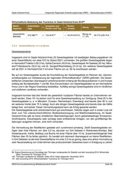Saale-Holzland-Kreis Integriertes Regionales Entwicklungskonzept (IREK) – Bestandsanalyse 04/2021 Wirtschaftliche Bedeutung des Tourismus im Saale-Holzland-Kreis 201999 Markt- Aufenthalts- Ausgaben pro Brutto- x = Abzug Nettoumsatz segment tage Person und Tag umsatz Gewerbliche Abzug ca. 372.080100 x 123,40 €101 = 45.914.672 € 40.772.228,74 € Betriebe 11, 2% 2.5.5 Gewerbeflächen im Landkreis Gewerbestandorte Insgesamt sind im Saale-Holzland-Kreis 25 Gewerbegebiete mit bestätigten Bebauungsplänen mit einer Gesamtfläche von etwa 572 ha (Stand 2021) vorhanden. Die größten Gewerbegebiete liegen in Hermsdorf/Tridelta II (50,3 ha), Kahla/Camisch (45,8 ha), Gewerbepark A4 Saaletal (42 ha), Mörs- dorf/Trillersbüsche (32,6 ha) und St. Gangloff/Wachtelberg (31,8 ha). Ein weiteres Gewerbegebiet soll ab 2021 in Hermsdorf/Ost II mit einer Fläche von ca. 56 ha erschlossen werden. Bis auf ein Gewerbegebiet wurde die Erschließung der Gewerbegebiete im Rahmen der „Gemein- schaftsaufgabe zur Verbesserung der regionalen Wirtschaftsstruktur“ (GRW) gefördert. Die Gewer- beflächen entstanden überwiegend verkehrsorientiert entlang der Bundesautobahnen 4 und 9 sowie entlang der Bundesstraßen 7 und 88. Eine Konzentration von Gewerbegebieten ist am Hermsdorfer Kreuz und in der Region Eisenberg feststellbar. Auffällig wenige Gewerbegebiete sind im nördlichen und südlichen Landkreis vorhanden. Insgesamt konnten fast drei Viertel der gewerblich nutzbaren Flächen bereits an Unternehmen ver- kauft werden. Etwa 151 ha stehen noch für eine Gewerbeansiedlung zur Verfügung. Etwa 20 % der Gewerbegebiete (u. a. in Mörsdorf, Crossen, Reichenbach, Eisenberg) sind bereits über 90 % und ein weiteres Viertel über 75 % belegt. Auch alle übrigen Gewerbegebiete sind bereits über die Hälfte belegt bzw. vermarktet. Dieser Vermarktungsstand kann als Erfolg gewertet werden. Die Gewerbegebiete sind verkehrstechnisch gut erschlossen. Defizite zeigen sich in erster Linie mit einer zum Teil unterdurchschnittlichen Breitbandversorgung und Mobilfunkabdeckung. Im Saale- Holzland-Kreis gibt es keine erheblichen Beeinträchtigungen durch gewerbebedingte Emissionen. Großindustrie, Industrieparks oder sonstige stark emittierende Anlagen, von den großflächige Be- lastungen ausgehen können, sind nicht vorhanden. Die Vermarktung der Restflächen gestaltet sich zunehmend schwierig. Zwölf Gewerbegebiete ver- fügen über freie Flächen von über 5,0 ha, darunter nur fünf Gebiete in Rothenstein/Schöps, Bad Klosterlausnitz, Kahla, Bollberg und Bucha mit einer Fläche über 10 ha. Zusammenhängende freie Flächen über 20 ha fehlen gänzlich. Es handelt sich demnach überwiegend um kleine Restflächen. In fünf Gebieten ist die freie Gewerbefläche mit unter 2,0 ha so gering, dass eine aktive Vermarktung oder Neuansiedlung von Unternehmen des produzierenden Gewerbes kaum in Erwägung zu ziehen 99 Eigene Berechnung auf Grundlage des Thüringer Landesamtes für Statistik und dwif consulting 2015: Wirtschafts faktor Tourismus für Thüringen 2014 100 Thüringer Landesamt für Statistik, Daten 2019, Daten abgerufen: November 2019 101 dwif consulting 2015: Wirtschaftsfaktor Tourismus für Thüringen 2014 KEM Kommunalentwicklung Mitteldeutschland GmbH Seite 53