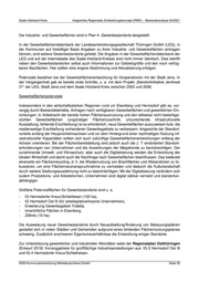 Saale-Holzland-Kreis Integriertes Regionales Entwicklungskonzept (IREK) – Bestandsanalyse 04/2021 ist. Diese Flächen sind als Bestandsflächen zu betrachten, die sich eher als Ergänzungs- oder Er- weiterungsflächen für bereits angesiedelte Betriebe, zur funktionellen Ergänzung des jeweiligen Ge- bietes (z. B. Stellplätze, (Ab-)Wasseraufbereitungsanlagen) oder als Reserve zur Ansiedlung von ergänzendem Handwerk und Dienstleistungen eignen. Angesichts stadtklimatischer Veränderungen in Folge des Klimawandels wäre als alternative Nutzung auch eine stärkere Begrünung der Gewer- begebiete, ggf. im Zuge von Ausgleichsmaßnahmen, vorstellbar. Gewerbe- und Industriegebiete im Saale-Holzland-Kreis Nr. Name Fläche Freie Fläche Auslas- gesamt Fläche belegt tung 1 Gewerbepark A4 Saaletal ca. 42 ha 35,6 ha 6 ha 14,3 % 2 Bollberg 29,39 ha 12,4 ha 16,99 ha 57,8 % 3 Kahla/Camisch 45,8 ha 12,01 ha 33,79 ha 74,0 % 4 Bad Klosterlausnitz/Muna 31,0 ha 11 ha 20,00 ha 64,5 % 5 Bucha/OT Schorba Industriepark Am Amselberg* 15,8 ha 10,7 ha 5,1 ha 32,3 % 6 Hermsdorf/Tridelta II 50,3 ha 8,85 ha 41,45 ha 82,4 % 7 Petersberg/Kuhberg 29,16 ha 8,41 ha 20,75 ha 69,7 % 8 Camburg/Tümpling 20,0 ha 8 ha 12,00 ha 60,0 % 9 Eisenberg/Wiesen 22,0 ha 6 ha 16,00 ha 72,0 % 10 Bucha/Pösener Weg 15,9 ha 5,5 ha 10,40 ha 65,4 % 11 Laasdorf 16,0 ha 5,47 ha 10,53 ha 65,8 % 12 Serba 21,6 ha 5 ha 16,60 ha 76,9 % 13 Großlöbichau 12,0 ha 3,85 ha 8,15 ha 67,9 % 14 St. Gangloff/Wachtelberg 31,8 ha 3,64 ha 28,16 ha 88,5 % 15 Bürgel 10,3 ha 3,57 ha 6,73 ha 65,3 % 16 Hermsdorf/Ost I u. III 27,0 ha 3,38 ha 23,62 ha 87,5 % 17 Königshofen 17,57 ha 2,18 ha 15,39 ha 87,6 % 18 Zöllnitz/Lerchenfeld 6,84 ha 2,13 ha 4,71 ha 68,8 % 19 Crossen/Lange Wiese Rautenanger 22,8 ha 1,92 ha 20,88 ha 91,6 % 20 Schöps/Mittleres Saaletal (Privat) 4,26 ha 1,17 ha 3,09 ha 72,5 % 21 Reichenbach/West 19,3 ha 0,78 ha 18,52 ha 96,0 % 22 Mörsdorf/Trillersbüsche 32,55 ha 0 ha 32,55 ha 100 % 23 Eisenberg/Nord 26,0 ha 0 ha 26,00 ha 100 % 24 Hainspitz/An der alten Bahn** 17,2 ha 0 ha 17,2 ha 100 % 25 Bad Klosterlausnitz/An der Krümme 5,2 ha 0 ha 5,2 ha 100 % Gesamt 571,77 ha 151,56 ha 419,81 ha 73,4 % * Gemeinsamer Bebauungsplan der Gemeinden Bucha und Magdala (Landkreis Weimarer Land), nachfolgend sind nur Flächen im Saale-Holzland-Kreis aufgeführt ** Es handelt sich um ein Gewerbe- und Mischgebiet. KEM Kommunalentwicklung Mitteldeutschland GmbH Seite 54