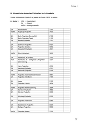 Anhang 4 B. Verzeichnis deutscher Zollstellen im Luftverkehr Vor die Schlüsselzahl (Spalte 3) ist jeweils der Zusatz „DE00“ zu setzen. Zu Spalte 1: HZA = Hauptzollamt ZA = Zollamt AbfSt = Abfertigungsstelle ZA Aschersleben 7352 AbfSt Augsburg-Flughafen 7430 ZA Berlin-Flughafen Schönefeld 2102 ZA Berlin-Flughafen Tegel 2105 ZA Bremen-Flughafen 2301 ZA Dortmund-Flughafen 8131 ZA Flughafen Dresden 5552 ZA Düsseldorf-Flughafen 2601 AbfSt Erfurt-Luftverkehr 3030 ZA Frankfurt a. M.- Fracht 3302 HZA Frankfurt a. M. - Sachgebiet C Flughafen 3301 Überwachung ZA Hahn-Flughafen 6756 ZA Hamburg-Flughafen 4701 ZA Hannover-Flughafen 5103 AbfSt Flughafen Karlsruhe/Baden-Baden 5881 ZA Flughafen Köln/Bonn 7154 ZA Laage 9102 ZA Flughafen Leipzig 5604 AbfSt Flughafen Memmingerberg 7554 ZA München-Flughafen 7650 ZA Münster-Flughafen 8306 ZA Nürnberg-Flughafen 8755 ZA Flughafen Paderborn 8380 ZA Saarbrücken-Flughafen 9304 ZA Stuttgart-Flughafen 9555 AbfSt Flughafen Weeze 2705 152