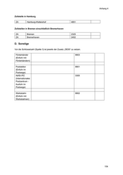 Anhang 4 Zollstelle in Hamburg ZA Hamburg-Waltershof 4851 Zollstellen in Bremen einschließlich Bremerhaven ZA Bremen 2325 ZA Bremerhaven 2452 D. Sonstige Vor die Schlüsselzahl (Spalte 3) ist jeweils der Zusatz „DE00“ zu setzen. Förderbänder 9903 (Einfuhr mit Förderbändern) Poststellen 9901 (Einfuhr im Postwege) AbfSt IPZ 3305 (Internationales Postzentrum - Ausfuhr im Postwege) Werksbahn 9902 (Einfuhr mit Werksbahnen) 154