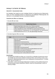 Anhang 5 Abschnitt B - Liste der gebräuchlichsten Codes Teil I - Ohne Präferenznachweis Code Anwendungsbereich 100 Anwendung des Drittlandszollsatzes (Angabe aus statistischen und dv-technischen Gründen notwendig) 110 Vorübergehende Zollaussetzung für bestimmte Waren aus dem landwirtschaftli- chen, chemischen, luftfahrttechnischen und mikroelektronischen Bereich 115 Zollaussetzungen wie in 110 genannt, jedoch verbunden mit einer Endverwendung gemäß Artikel 254 UZK und Zollaussetzungen gemäß Anhang I der Kombinierten Nomenklatur, Teil 1 - Einführende Vorschriften - Titel II - Besondere Bestimmungen „Waren für bestimmte Arten von Wasserfahrzeugen und für Bohr- und Förderplatt- formen“ 120 Nichtpräferenzielle Zollkontingente (einschl. WTO- und autonome Zollkontingente, Erga omnes und ursprungsbezogene Kontingente) [Hinweis: Die Angabe der Kon- tingentsnummer im Feld Nr. 39 ist erforderlich.] 123 Nichtpräferenzielle Zollkontingente (einschl. WTO- und autonome Zollkontingente, Erga omnes und ursprungsbezogene Kontingente) bei Endverwendung [Hinweis: Die Angabe der Kontingentsnummer im Feld Nr. 39 ist erforderlich.] 125 Nichtpräferenzielle Zollkontingente (einschl. WTO- und autonome Zollkontingente, Erga omnes und ursprungsbezogene Kontingente) aufgrund einer besonderen Bescheinigung (z. B. Abstammungsbescheinigungen Bescheinigungen für hand- gearbeitete und auf Handwebstühlen hergestellte Waren; die Präferenz wird nur bei Vorlage der erforderlichen Dokumente gewährt) [Hinweis: Die Angabe der Kon- tingentsnummer im Feld Nr. 39 ist erforderlich.] 140 Alle Fälle der Endverwendung mit einem entsprechenden Fußnotenhinweis im EZT (Maßnahmeschlüssel 105) 150 Abgabenbegünstigung unter Vorlage einer der betreffenden Bescheinigungen z. B. Echtheitszeugnis, Bescheinigung der Ursprungsbezeichnung, Reinheitszeugnis, siehe unter „Besondere Bestimmungen“ im EZT Teil II - Mit Präferenznachweis Form A oder Ursprungserklärung auf der Rechnung Code Anwendungsbereich 200 Anwendung des APS Zollsatzes ohne weitere Bedingungen oder Einschränkungen 220 Anwendung des APS Zollsatzes im Rahmen eines Zollkontingents [Hinweis: Die Angabe der Kontingentsnummer im Feld Nr. 39 ist erforderlich.] 225 Anwendung des APS Zollsatzes im Rahmen eines Zollkontingents mit Bescheini- gung über die Beschaffenheit der Ware [Hinweis: Die Angabe der Kontingents- nummer im Feld Nr. 39 ist erforderlich.] Teil III - Mit Präferenznachweis EUR.1/EUR-MED oder gleichwertigem Dokument Code Anwendungsbereich 300 Anwendung des betreffenden präferenzierten Zollsatzes ohne weitere Bedingun- gen oder Einschränkungen 320 Anwendung des betreffenden präferenzierten Zollsatzes innerhalb eines Zollkon- tingents (Angabe der Kontingentsnummer [Feld Nr. 39] erforderlich) 156