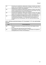 Anhang 5 323 Anwendung des betreffenden präferenzierten Zollsatzes innerhalb eines Zollkon- tingents unter der Bedingung der Endverwendung [Hinweis: Die Angabe der Kon- tingentsnummer im Feld Nr. 39 ist erforderlich.] 325 Anwendung des betreffenden präferenzierten Zollsatzes im Rahmen eines Zollkon- tingents mit Bescheinigung über die Beschaffenheit der Ware [Hinweis: Die Anga- be der Kontingentsnummer im Feld Nr. 39 ist erforderlich.] 328 Anwendung des betreffenden präferenzierten Zollsatzes innerhalb eines Zollkon- tingents bei der Wiedereinfuhr von Textilien im Rahmen der passiven Veredelung [Hinweis: Die Angabe der Kontingentsnummer im Feld Nr. 39 ist erforderlich.] 350 Anwendung des betreffenden präferenzierten Zollsatzes unter Vorlage einer der betreffenden Bescheinigungen z. B. Echtheitszeugnis, Bescheinigung der Ur- sprungsbezeichnung, Reinheitszeugnis, siehe unter „Besondere Bestimmungen“ im EZT. Teil IV - Mit Warenverkehrsbescheinigung A.TR, Versandpapier T2, T2L oder gleichwertigem Dokument Code Anwendungsbereich 400 Bei Waren anzuwenden, für die wegen einer Zollunion keine Abgaben erhoben werden (z. B. Andorra betr. Waren der Kap. 25 bis 97 des EZT) 420 Zollkontingente im Rahmen einer Zollunion z. B. Türkei [Hinweis: Die Angabe der Kontingentsnummer im Feld Nr. 39 ist erforderlich.] 157