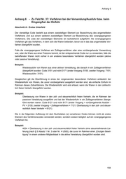 Anhang 6 Anhang 6 - Zu Feld Nr. 37: Verfahren bei der Versendung/Ausfuhr bzw. beim Eingang/bei der Einfuhr Abschnitt A - Erstes Unterfeld Der vierstellige Code besteht aus einem zweistelligen Element zur Bezeichnung des angemeldeten Verfahrens und aus einem weiteren zweistelligen Element zur Bezeichnung des vorangegangenen Verfahrens. Die Liste der zweistelligen Elemente ist nachstehend aufgeführt. Als vorangegangene Verfahren gilt das Verfahren, in dem sich die Waren befanden, bevor sie in das das angemeldete Ver- fahren übergeführt wurden. Falls die vorangegangene Verfahren ein Zolllagerverfahren oder eine vorübergehende Verwendung war, oder die Ware aus einer Freizone kommt, ist der entsprechende Code nur zu verwenden, falls die betreffenden Waren nicht vorher in ein anderes besonderes Verfahren übergeführt wurden (aktive oder passive Veredelung). Beispiel: Wiederausfuhr von Waren aus einer aktiven Veredelung, die danach in ein Zolllagerverfahren übergeführt wurden: Code 3151 und nicht 3171 (erster Vorgang: 5100; zweiter Vorgang: 7151; Wiederausfuhr: 3151). Desgleichen gilt die Überführung in eines der vorgenannten besonderen Verfahren anlässlich der Wiedereinfuhr von Waren, die zuvor vorübergehend ausgeführt worden sind, als einfache Einfuhr im Rahmen dieses Zollverfahrens. Die Wiedereinfuhr wird erst erfasst, wenn die Waren in den zollrecht- lich freien Verkehr übergeführt werden. Beispiel: Überlassung von Waren in den zoll- und steuerrechtlich freien Verkehr, die im Rahmen der passiven Veredelung ausgeführt und bei der Wiedereinfuhr in ein Zolllagerverfahren überge- führt worden waren: Code 6121 und nicht 6171 (erster Vorgang = vorübergehende Ausfuhr - PV = 2100; zweiter Vorgang = Zolllagerverfahren = 7121; Überlassung in den zoll- und steuer- rechtlich freien Verkehr = 6121). Die in der folgenden Auflistung mit dem Buchstaben (a) versehenen Codes können nicht als erstes Element des Verfahrenscodes verwendet werden, sondern weisen lediglich auf ein vorangegangenes Verfahren hin. Beispiel: 4054 = Überlassung in den zoll- und steuerrechtlich freien Verkehr ohne steuerbefreiende Lie- ferung (nach § 5 Absatz 1 Nr. 3 oder Nr. 4 UStG), die zuvor im Rahmen einer „Einzigen Bewil- ligung“ in einem anderen Mitgliedstaat in die aktive Veredelung übergeführt worden sind. 158