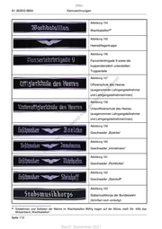 Offen A1-2630/0-9804 Kennzeichnungen Abbildung 154 89 Wachbataillon Abbildung 155 Heeresfliegertruppe Abbildung 156 Panzerlehrbrigade 9 sowie die truppendienstlich unterstellten Truppenteile Abbildung 157 ! st en Offizierschule des Heeres sd i (ausgenommen Lehrgangsteilnehmer ng ru und Lehrgangsteilnehmerinnen) de Än Abbildung 158 m de Unteroffizierschule des Heeres ht ic (ausgenommen Lehrgangsteilnehmer tn eg und Lehrgangsteilnehmerinnen) rli te Abbildung 159 un k Geschwader „Boelcke“ uc dr us rA Abbildung 160 se Geschwader „Immelmann“ ie D Abbildung 161 Geschwader „Richthofen“ Abbildung 162 Geschwader „Steinhoff“ Abbildung 163 Stabsmusikkorps der Bundeswehr (Schriftart noch vorläufig!) 89 Soldatinnen und Soldaten der Marine im Wachbataillon BMVg tragen auf der Mütze, weiß (Nr. 406) das Mützenband „Wachbataillon“. Seite 112 Stand: September 2021