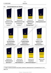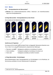 Offen Abzeichen A1-2630/0-9804 a) Dienstgradabzeichen der Offizieranwärter (OA) – als Aufschiebeschlaufe Abbildung Abbildung Abbildung Abbildung Abbildung Abbildung Abbildung Abbildung 231 232 233 234 235 236 237 238 Matrose Seekadett Obermaat Fähnrich Oberboots- Oberfähn- Stabs- Oberstabs- OA OA zur See mann OA rich zur bootsmann bootsmann See OA OA b) Dienstgradabzeichen der Offizieranwärter (OA) – als Schulterklappe st ! en sd i ng ru de Än m de ht Abbildung Abbildung Abbildung Abbildung ic Abbildung Abbildung Abbildung Abbildung 239 240 241 242tn 243 244 245 246 eg Stabsge- Seekadett Obermaat Fähnrich rli Oberboots- Oberfähn- Stabs- Oberstabs- freiter OA OA te zur See mann OA rich zur bootsmann bootsmann un See OA OA k uc dr us c) Dienstgradabzeichen der Offizieranwärter (OA) – als Ärmelaufnäher rA se ie D Abbildung Abbildung Abbildung Abbildung Abbildung Abbildung Abbildung Abbildung 247 248 249 250 251 252 253 254 Gefreiter Seekadett Obermaat Fähnrich Oberboots- Oberfähn- Stabs- Oberstabs- OA OA zur See mann OA rich zur bootsmann bootsmann See OA OA Oberärmel Unterärmel Seite 131 Stand: September 2021