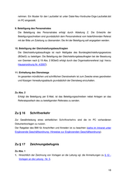 nehmen. Ein Muster für den Laufzettel ist unter Datei-Neu-Vordrucke-Orga-Laufzettel.dot im PC eingestellt. 9. Beteiligung des Personalrates Die Beteiligung des Personalrates erfolgt durch Abteilung Z. Die Entwürfe der Beteiligungsschreiben sind grundsätzlich dem Personalreferat vom federführenden Referat mit der Bitte um Zuleitung zu übersenden. Die Art der Beteiligung soll angegeben werden. 10. Beteiligung der Gleichstellungsbeauftragten Die Gleichstellungsbeauftragte ist nach Maßgabe des Bundesgleichstellungsgesetzes (BGleiG) zu beteiligen. Die Beteiligung der Gleichstellungsbeauftragten bei der Besetzung von Gremien nach § 19 Abs. 2 BGleiG erfolgt durch das Organisationsreferat (vgl. hierzu Hausanordnung Nr. 4/2007). 11. Einhaltung des Dienstwegs Im gesamten mündlichen und schriftlichen Dienstverkehr ist zum Zwecke eines geordneten und flüssigen Verwaltungsablaufs grundsätzlich der Dienstweg einzuhalten. Zu Abs. 2 Erfolgt die Beteiligung per E-Mail, ist das Beteiligungsschreiben nebst Anlagen an das Referatspostfach des zu beteiligenden Referates zu senden. Zu § 16 Schriftverkehr Zur Gewährleistung eines einheitlichen Schriftverkehrs sind die im PC vorhandenen Dokumentvorlagen zu nutzen. Der Ratgeber des BMI für Anschriften und Anreden ist zu beachten (siehe im Intranet unter Ergänzende Geschäftsordnung- Hinweise zur Ergänzenden Geschäftsordnung). Zu § 17 Zeichnungsbefugnis Zu Abs. 1 1. Hinsichtlich der Zeichnung von Vorlagen an die Leitung vgl. die Anmerkungen zu § 12 - Vorlagen an die Leitung - Nr. 5. 18