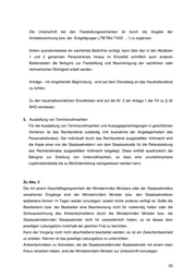 Die Unterschrift bei den Feststellungsvermerken ist durch die Angabe der Amtsbezeichnung bzw. der Entgeltgruppe („TB/TB'e TVöD ...“) zu ergänzen. Sofern ausnahmsweise ein sachliches Bedürfnis vorliegt, kann über den in den Absätzen 1 und 2 genannten Personenkreis hinaus im Einzelfall schriftlich auch anderen Bediensteten die Befugnis zur Feststellung und Bescheinigung der sachlichen oder rechnerischen Richtigkeit erteilt werden. Anträge - mit eingehender Begründung - sind auf dem Dienstweg an das Haushaltsreferat zu richten. Zu den haushaltsrechtlichen Einzelheiten wird auf die Nr. 2 der Anlage 1 der VV zu § 34 BHO verwiesen. 5. Ausstellung von Terminsvollmachten Für die Ausstellung von Terminsvollmachten und Aussagegenehmigungen in gerichtlichen Verfahren ist das Rechtsreferat zuständig (mit Ausnahme der Angelegenheiten des Personalreferates). Der individuell durch das Rechtsreferat ausgestellten Vollmacht wird die Kopie einer von der Staatssekretärin/ von dem Staatssekretär für die Referatsleitung des Rechtsreferates ausgestellten Vollmacht beigelegt. Diese enthält ausdrücklich die Befugnis zur Erteilung von Untervollmachten, so dass eine ununterbrochene Legitimationskette bis zu Behördenleitung nachgewiesen werden kann. Zu Abs. 2 Die mit einem Geschäftsgangvermerk der Ministerin/des Ministers oder der Staatssekretäre versehenen Eingänge sind der Ministerin/dem Minister bzw. den Staatssekretären spätestens binnen 14 Tagen wieder vorzulegen, soweit nichts anderes verfügt ist. Sollte die Bearbeiterin bzw. der Bearbeiter eine Beantwortung nicht für notwendig halten oder die Schlusszeichnung des Antwortschreibens durch die Ministerin/den Minister bzw. die Staatssekretärin/den Staatssekretär nicht für zweckdienlich halten, so ist dieses dem jeweiligen Leitungsbüro innerhalb der gleichen Frist zu berichten. Kann der Vorgang noch nicht abschließend bearbeitet werden, so ist ein Zwischenbescheid zu erteilen. Hiervon ist das jeweilige Leitungsbüro zu unterrichten. Antwortschreiben zu Schreiben, die die Staatssekretärin/der Staatssekretär mit einem roten Kreuz versehen haben, sind der Ministerin/dem Minister zur Unterschrift vorzulegen. 20