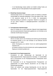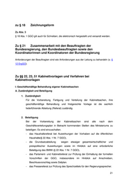 zu § 18 Zeichnungsform Zu Abs. 3 § 18 Abs. 1 GGO gilt auch für Schreiben, die elektronisch hergestellt und versandt werden. Zu § 21 Zusammenarbeit mit den Beauftragten der Bundesregierung, den Bundesbeauftragten sowie den Koordinatorinnen und Koordinatoren der Bundesregierung Anforderungen der Beauftragten sind wie Anforderungen aus der Leitung zu behandeln (s. § 12 ErgGO). Zu §§ 22, 23, 51 Kabinettvorlagen und Verfahren bei Kabinettvorlagen I. Geschäftsmäßige Behandlung eigener Kabinettsachen A. Zuständigkeit und Beteiligung 1. Zuständigkeit Für die Vorbereitung, Fertigung und Verteilung der Kabinettsachen, ihre geschäftsmäßige Behandlung und fristgerechte Vorlage ist die sachlich federführende Abteilung (Referat) zuständig. 2. Beteiligung Bei der Vorbereitung der Kabinettsachen sind alle nach dem Geschäftsverteilungsplan in Betracht kommenden Stellen des Ministeriums zu beteiligen. Es sind einzuschalten. - das Haushaltsreferat bei Auswirkungen der Vorhaben auf die öffentlichen Haushalte(§ 22 Abs. 1 Nr. 7 GGO), - die Grundsatzabteilung wegen etwaiger gesamtwirtschaftlicher und preispolitischer Auswirkungen sowie im Hinblick auf eine erforderliche Beteiligung des BMWi (§ 22 Abs. 1 Nr. 7 GGO), - das Parlament- und Kabinettreferat zur Prüfung der Einhaltung der formellen Vorschriften der GGO, insbesondere im Hinblick auf Anschreiben, Beschlussvorschlag sowie Zeitplan. - das Pressereferat zur Prüfung des Sprechzettels für den Regierungssprecher. 21