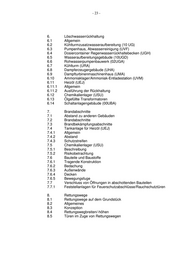 - 23 - 6. Löschwasserrückhaltung 6.1 Allgemein 6.2 Kühlturmzusatzwasseraufbereitung (10 UG) 6.3 Pumpenhaus, Abwasserreinigung (UVF) 6.4 Dosiercontainer Regenwasserrückhaltebecken (UGH) 6.5 Wasseraufbereitungsgebäude (10UGD) 6.6 Rohwasserpumpenbauwerk (02UGA) 6.7 Kühlturm (URA) 6.8 Dampferzeugergebäude (UHA) 6.9 Dampfturbinenmaschinenhaus (UMA) 6.10 Ammoniaklager/Ammoniak-Entladestation (UVM) 6.11 Heizöl (UEJ) 6.11.1 Allgemein 6.11.2 Ausführung der Rückhaltung 6.12 Chemikalienlager (USU) 6.13 Ölgefüllte Transformatoren 6.14 Schaltanlagengebäude (00UBA) 7. Brandabschnitte 7.1 Abstand zu anderen Gebäuden 7.2 Brandabschnitte 7.3 Brandbekämpfungsabschnitte 7.4 Tankanlage für Heizöl (UEJ) 7.4.1 Allgemein 7.4.2 Abstand 7.4.3 Schutzstreifen 7.5 Chemikalienlager (USU) 7.5.1 Beschreibung 7.5.2 Risikobetrachtung 7.6 Bauteile und Baustoffe 7.6.1 Tragende Konstruktion 7.6.2 Bedachung 7.6.3 Außenwände 7.6.4 Decken 7.6.5 Bewegungsfuge 7.7 Verschluss von Öffnungen in abschottenden Bauteilen 7.7.1 Feststellanlagen für Feuerschutzabschlüsse/Rauchschutztüren 8. Rettungswege 8.1 Rettungswege auf dem Grundstück 8.2 Allgemeines 8.3 Konzeption 8.4 Rettungswegbreiten/-höhen 8.5 Türen im Zuge von Rettungswegen