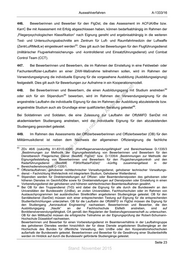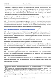 A-1333/16 Auswahlverfahren 45 46 Fachgebiet angehören, für welche(s) das Auswahlverfahren stattfindet; im Ausnahmefall darf es entsprechend qualifiziert einer anderen Statusgruppe bei der Bundeswehr angehören. Alternativ kann die verwendungsbezogene Eignung auch durch spezielle fachliche (laufbahn-, fachrichtungs- oder fachgebietsbezogene) Auswahlmodule mit Bewertung durch fachlich entsprechend qualifiziertes Personal der Bundeswehr festgestellt werden. Das Nähere regelt das BAPersBw in Abstimmung mit den bedarfstragenden OrgBer und unter Beteiligung der zuständigen Interessenvertretungen. 426. Die zuständige Gleichstellungsbeauftragte oder eine von ihr beauftragte Person sowie die zuständigen Interessenvertretungen können an den Bewerbungsgesprächen bzw. Auswahlverfahren sowie den anschließenden Beratungen teilnehmen. Sie sind jedoch nicht stimmberechtigt und ihre Anwesenheit hat keinen Einfluss auf die paritätische Besetzung der Kommission. ! st en 4.3.2.3 Auswahlkommission für militärische Assessments di gs 427. Die Auswahlkommission beim ACFüKrBw besteht grundsätzlich aus mindestens je einem für ru n de diese Funktion ausgebildeten Stabsoffizier, einem weiteren Offizier sowie einer Psychologin bzw. Än einem Psychologen. Im Bedarfsfall kann sie auch aus nur einem Offizier und einer Psychologin bzw. em einem Psychologen bestehen. td 428. ic h Die Auswahlkommission beim KarrC Bw besteht i. d. R. aus einem für diese Funktion tn ausgebildeten Stabsoffizier/Offizier und einer Psychologin bzw. einem Psychologen. eg terli 429. Besteht die Auswahlkommission aus nur zwei Personen, kann in Zweifelsfällen zum Zwecke un einer abschließenden Bewertungsfindung ein zusätzliches Gespräch mit der Bewerberin bzw. dem k us Bewerber geführt werden, bei dem der Kommission eine Fachvorgesetzte bzw. ein Fachvorgesetzter druc hinzutritt. er A 430. Die verwendungsbezogene Eignung wird, sofern erforderlich, durch spezielle fachliche ie s (laufbahn- und verwendungsbezogene) Auswahlmodule mit Bewertung durch entsprechend D qualifiziertes Personal der Bundeswehr festgestellt. 431. Die zuständige Gleichstellungsbeauftragte oder eine von ihr beauftragte Person können an den militärischen Assessments sowie den anschließenden Beratungen teilnehmen. Sie ist jedoch nicht Angehörige der der Kommission. 43 Nichttechnisch, technisch, naturwissenschaftlich, sprach- und kulturwissenschaftlich … (s. a. § 6 Absatz 2 BLV). 44 Z. B. im Rahmen des technischen Dienstes z. B. Feuerwehr, Wehrtechnik, Umwelttechnik, Hochbau …, im Rahmen des nichttechnischen Dienstes z. B. Jurisprudenz, Wirtschaftswissenschaften, … u. a. 45 Im Rahmen der Fachrichtung Wehrtechnik z. B. Systembewaffnung und Effektoren, Luft- und Raumfahrttechnik, … 46 Wenn qualifizierte Beamtinnen und Beamte als Auswahlkommissionsmitglieder (z. B. für die Fernmelde- und elektronische Aufklärung) nicht zur Verfügung stehen. Seite 18 Stand: November 2015