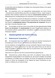 Offen Verhaltensnorm und Führungskultur A-2600/1 403. Aus den Zielen der Inneren Führung und dem militärischen Auftrag der Bundeswehr ergeben sich unmittelbare Anforderungen an Vorgesetzte, Soldatinnen und Soldaten: • Die Soldatinnen und Soldaten sind „Staatsbürger in Uniform“, die bewusst von ihren Rechten Gebrauch machen und ebenso selbstverständlich ihre damit verbundenen Pflichten erfüllen. • Sie erkennen und bejahen, dass demokratisch legitimierter politischer Wille stets Vorrang vor militärischer Führung hat. • Sie sind sich des gegenseitigen Treueverhältnisses zum Staat bewusst. • Vorgesetzte wecken, erhalten und vertiefen Verantwortungsbewusstsein und innere Bereitschaft zur Mitarbeit. • Sie sind sich bewusst, dass sich der Dienst an den Erfordernissen des Einsatzes orientieren muss. • Sie wenden das Prinzip „Führen mit Auftrag“ an. t. • Sie beziehen Ausbildung und Erziehung sinnvoll auf die Aufgaben der Soldatinnen und Soldaten ns ie und fördern dabei deren Bildung und Persönlichkeitsentwicklung.sd ng • Sie berücksichtigen bei allen Entscheidungen berechtigte Belange und Bedürfnisse ihrer Unter- ru gebenen. de Än • Sie sind für den Wandel in Politik, Gesellschaft, Wirtschaft, Kultur, Wissenschaft und Technik offen m de und berücksichtigen ihn in ihrem Führungsverhalten. ic • Sie machen den Sinn des Auftrages der Bundeswehr sowie Sinn und Notwendigkeit der jeweils ht tn gestellten Aufgabe einsichtig und verständlich. eg terli Diese Anforderungen sind richtungsweisend für den Dienst in den Streitkräften. un k 5 Verhaltensnorm und Führungskultur uc dr us 501. Innere Führung ist verpflichtende Grundlage des eigenen Handelns im Grundbetrieb wie im rA se Einsatz, in nationalen wie in multinationalen Strukturen. Alle Soldatinnen und Soldaten haben ihr ie D Verhalten und Handeln an den Grundsätzen der Inneren Führung auszurichten. Hieraus entsteht ein wichtiges Element der Führungskultur der Bundeswehr. 502. Die zivilen Angehörigen der Bundeswehr müssen sich bewusst sein, dass ihr Handeln vielfach die Rechte und Pflichten der Soldatinnen und Soldaten berührt. Damit bestimmen sie die innere Verfassung der Streitkräfte wesentlich mit und sind deshalb gehalten, ihr Handeln in gleicher Weise an den Grundsätzen der Inneren Führung auszurichten. 503. Innere Führung ist die Grundlage des militärischen Dienstes in der Bundeswehr und bestimmt die Gesamtheit von Führung, Erziehung und Ausbildung. Sie ist in diesem Verständnis keine eigenständige Aufgabe, sondern bestimmt das soldatische Selbstverständnis, das beim Führen im Gefecht ebenso zur Geltung kommt wie beim Gestalten des Innendienstes. Seite 9 Stand: April 2018