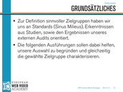 Zielgruppen GRUNDSÄTZLICHES § Zur Definition sinnvoller Zielgruppen haben wir uns an Standards (Sinus Milieus), Erkenntnissen aus Studien, sowie den Ergebnissen unseres externen Audits orientiert. § Die folgenden Ausführungen sollen dabei helfen, unsere Auswahl zu begründen und gleichzeitig die gewählte Zielgruppe charakterisieren. BPA Social Media Strategie 03.12.14 31
