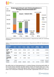 I NT E G R I E R T E S K L I M A SC H U T Z K O N Z E P T L AN D K R E I S B R E I S G A U - H O C H S C H W AR Z W A L D Endenergieverbrauch nach Verbrauchssektoren in MWh Breisgau-Hochschwarzwald 2017 2.500.000 2.306.083 MWh 2.212.143 MWh Gesamt: 7.096.654 MWh 2.000.000 Kraftstoffe Wärme aus EEQ 1.500.000 Kohle 1.310.170 MWh 1.176.602 MWh Fernwärme 1.000.000 Erdgas Heizöl 500.000 Strom 89.656 MWh - Private Haushalte Gewerbe und Industrie Kommunale Verkehr Sonstiges (GHD) Liegenschaften 32 % 17 % 18 % 1% 31 % Abbildung 8: Endenergieverbräuche nach Verbrauchssektoren in Megawattstunden (MWh) 2017 (Darstellung energielenker) Tabelle 1: Endenergieverbräuche nach Verbrauchssektoren in Megawattstunden (MWh) 2017 (Darstellung ener- gielenker) Endenergie- Fern- Wärme Kraft- verbrauch Strom Heizöl Erdgas Kohle Summe wärme aus EEQ stoffe (MWh) Private Haus- 312.642 624.477 756.562 21.557 1.244 589.600 2.306.083 halte Gewerbe und Sonstiges 182.338 58.854 291.409 8.455 533 637.013 1.178.602 (GHD) Industrie 499.433 - 799.362 263 - 11.112 1.310.170 Kommunale Liegenschaf- 28.063 277 48.933 12.384 - - 89.656 ten Verkehr 35.219 2.176.924 2.212.143 Summe 1.057.695 683.608 1.896.265 42.659 1.778 1.237.725 2.176.924 7.096.654 Der größte Anteil am Endenergieverbrauch im Landkreis Breisgau-Hochschwarzwald entfällt mit 32 % auf die privaten Haushalte. Die beiden Sektoren Verkehr und Industrie folgen mit 31 % bez. 18 % Verbrauchsanteil. An vierter Stelle liegt der Sektor Gewerbe und Sonstiges (GHD) mit 17 % Anteil an der verbrauchten Endenergie. Die kommunalen Liegenschaften sind mit 2 % der ver- 17