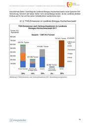 I NT E G R I E R T E S K L I M A S C H U T Z K O N Z E P T L AN D K R E I S B R E I S G A U - H O C H S C H W AR Z W A L D brauchärmste Sektor. Damit liegt der Landkreis Breisgau-Hochschwarzwald in einer typischen Grö- ßenordnung. Dennoch darf dieser Sektor nicht vernachlässigt werden, da der Landkreis direkten Einfluss auf ihn hat und hier seiner Vorbildfunktion nachkommen kann. THG-Emissionen im Landkreis Breisgau-Hochschwarzwald TGH-Emissionen nach Verbrauchssektoren im Landkreis Breisgau-Hochschwarzwald 2017 Tonnen CO2- Äquivalente Gesamt: 1.997.912 Tonnen 800.000 707.610 Tonnen Kraftstoffe 700.000 578.753 Tonnen Wärme aus EEQ 600.000 474.583 Tonnen Kohle 500.000 Fernwärme 400.000 Erdgas 300.000 207.396 Tonnen Heizöl 200.000 Strom 100.000 29.569 Tonnen - Private Haushalte Gewerbe und Industrie Kommunale Verkehr Sonstiges (GHD) Liegenschaften 29% 10% 24% 2% 35% Abbildung 9: TGH-Emissionen nach Verbrauchssektoren 2017 (Darstellung energielenker) 18