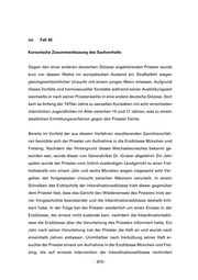 - das dokumentierte Verhalten des damaligen Erzbischofs nach Auffas- sung der Gutachter keine Hinwendung zu den Geschädigten und den für diese aus den Missbrauchstaten resultierenden Tatfolgen erkennen lässt. l) Fall 35 Kursorische Zusammenfassung des Sachverhalts Der einer ausländischen Diözese angehörende Priester war über 20 Jahre als Religionslehrer in der Erzdiözese München und Freising tätig. Anfang der 1970er Jahre wurde er wegen zweier sachlich zusammentreffender Verbre- chen der Unzucht mit einem Kind zu einer Freiheitsstrafe von einem Jahr ver- urteilt, deren Vollstreckung zur Bewährung ausgesetzt wurde. Eine Kopie des Urteils ist ausschließlich in der persönlichen Ablage/Handakte von General- vikar Dr. Gruber zu finden. Ein Jahr nach der Verurteilung wurde der Priester als Hausgeistlicher in einem Altenheim eingesetzt. Gutachterliche Bewertung basierend auf der Aktensichtung Basierend auf der Sichtung der Akten stellt sich das Verhalten des damaligen Erzbischofs Julius Kardinal Döpfner in diesem Fall nach gutachterlicher Be- wertung so dar, dass - jedenfalls im Zusammenhang mit dem gegen den Priester ergangenen strafrechtlichen Urteil nach Überzeugung der Gutachter der Verdacht begründet ist, dass er Kenntnis hinsichtlich der vor seiner Amtszeit ver- übten Missbrauchstaten des Priesters hatte, da eine Verurteilung eines in seiner Diözese tätigen Priesters ohne seine Kenntnis unrealistisch ist, - 673 -