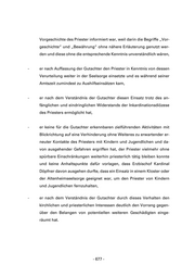 Vorgeschichte des Priester informiert war, weil darin die Begriffe „Vor- geschichte“ und „Bewährung“ ohne nähere Erläuterung genutzt wer- den und diese ohne die entsprechende Kenntnis unverständlich wären, - er nach Auffassung der Gutachter den Priester in Kenntnis von dessen Verurteilung weiter in der Seelsorge einsetzte und es während seiner Amtszeit zumindest zu Aushilfseinsätzen kam, - er nach dem Verständnis der Gutachter diesen Einsatz trotz des an- fänglichen und eindringlichen Widerstands der Inkardinationsdiözese des Priesters ermöglicht hat, - er keine für die Gutachter erkennbaren zielführenden Aktivitäten mit Blickrichtung auf eine Verhinderung ohne Weiteres zu erwartender er- neuter Kontakte des Priesters mit Kindern und Jugendlichen und da- von ausgehender Gefahren ergriffen hat, der Priester vielmehr ohne spürbare Einschränkungen weiterhin priesterlich tätig bleiben konnte und keine Anhaltspunkte dafür vorlagen, dass Erzbischof Kardinal Döpfner davon ausgehen durfte, dass ein Einsatz in einem Kloster oder der Altenheimseelsorge geeignet war, um den Priester von Kindern und Jugendlichen fernzuhalten, - er nach dem Verständnis der Gutachter durch dieses Verhalten den kirchlichen und priesterlichen Interessen deutlich den Vorrang gegen- über den Belangen von potentiellen weiteren Geschädigten einge- räumt hat. - 677 -