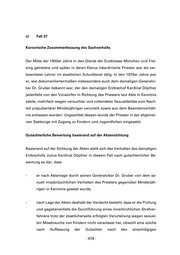 n) Fall 37 Kursorische Zusammenfassung des Sachverhalts Der Mitte der 1950er Jahre in den Dienst der Erzdiözese München und Frei- sing getretene und später in deren Klerus inkardinierte Priester war als ver- beamteter Lehrer im staatlichen Schuldienst tätig. In den 1970er Jahre war er, wie dokumentiertermaßen insbesondere auch dem damaligen Generalvi- kar Dr. Gruber bekannt war, der den damaligen Erzbischof Kardinal Döpfner jedenfalls von den Vorwürfen in Richtung des Priesters laut Akte in Kenntnis setzte, mehrfach wegen versuchter und vollendeter Sexualdelikte zum Nach- teil präpubertärer Minderjähriger verurteilt sowie aus dem Beamtenverhält- nis entlassen worden. Ungeachtet dessen wurde der Priester in der allgemei- nen Seelsorge mit Zugang zu Kindern und Jugendlichen eingesetzt. Gutachterliche Bewertung basierend auf der Aktensichtung Basierend auf der Sichtung der Akten stellt sich das Verhalten des damaligen Erzbischofs Julius Kardinal Döpfner in diesem Fall nach gutachterlicher Be- wertung so dar, dass - er nach Aktenlage durch seinen Generalvikar Dr. Gruber von dem se- xuell missbräuchlichen Verhalten des Priesters gegenüber Minderjäh- rigen in Kenntnis gesetzt wurde, - nach Lage der Akten deshalb der Verdacht besteht, dass er die Prüfung und gegebenenfalls die Durchführung eines innerkirchlichen Strafver- fahrens trotz der staatlicherseits erfolgten Verurteilung wegen sexuel- len Missbrauchs von Kindern nicht veranlasst hat, obwohl eine solche nach Auffassung der Gutachter nach den einschlägigen - 678 -