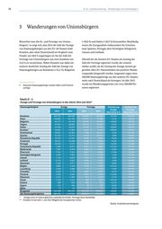 76 II. Zu- und Abwanderung – Wanderungen von Unionsbürgern 3 Wanderungen von Unionsbürgern Betrachtet man die Zu- und Fortzüge von Unions- (+39,8 %) und Italien (+26,9 %) festzustellen. Rückläufig bürgern, so zeigt sich, dass 2014 die Zahl der Zuzüge 5 waren die Zuzugszahlen insbesondere für Griechen- von Staatsangehörigen aus den EU-28-Staaten (inkl. land, Spanien, Portugal, dem Vereinigten Königreich, Kroatien, aber ohne Deutschland) im Vergleich zum Litauen und Lettland. Vorjahr um 20,8 % angestiegen ist; bei der Zahl der Fortzüge von Unionsbürgern war eine Zunahme um Obwohl für die meisten EU-Staaten ein Anstieg der 31,8 % zu verzeichnen. Neben Kroatien war dabei ein Zahl der Fortzüge registriert wurde, der zumeist weiterer deutlicher Anstieg der Zahl der Zuzüge von stärker ausfiel, als der Anstieg der Zuzüge, konnte ge- Staatsangehörigen aus Rumänien (+52,2 %), Bulgarien genüber allen EU-Nationalitäten ein positiver Wande- rungssaldo festgestellt werden. Insgesamt zogen etwa 340.000 Staatsangehörige aus den anderen EU-Staaten mehr nach Deutschland als fortzogen. Im Jahr 2013 5 Deutsche Staatsangehörige werden dabei nicht berück- wurde ein Wanderungsgewinn von circa 300.000 Per- sichtigt. sonen registriert. Tabelle II - 3: Zuzüge und Fortzüge von Unionsbürgern in den Jahren 2013 und 2014* Staatsangehörigkeit Zuzüge Fortzüge Veränderung Veränderung Zuzüge Fortzüge 2013 2014 2013 2014 2013/2014 in % 2013/2014 in % Rumänien 102.753 156.440 43.953 63.363 +52,2% +44,2% Polen 136.682 143.760 57.227 70.700 +5,2% +23,5% Bulgarien 45.177 63.140 19.401 24.466 +39,8% +26,1% Ungarn 47.023 48.063 19.378 23.679 +2,2% +22,2% Italien 34.416 43.676 13.450 19.702 +26,9% +46,5% Kroatien** 18.633 37.060 6.642 9.416 +98,9% +41,8% Griechenland 24.921 23.361 7.366 10.127 -6,3% +37,5% Spanien 21.552 21.375 6.918 10.352 -0,8% +49,6% Slowakische Republik 11.475 12.567 6.000 7.082 +9,5% +18,0% Frankreich 10.411 11.058 5.708 7.934 +6,2% +39,0% Portugal 10.426 9.175 3.957 5.219 -12,0% +31,9% Tschechische Republik 7.904 8.971 3.821 4.868 +13,5% +27,4% Niederlande 7.907 8.350 4.480 5.404 +5,6% +20,6% Österreich 7.351 7.925 4.861 5.948 +7,8% +22,4% Vereinigtes Königreich 7.492 7.401 4.331 5.782 -1,2% +33,5% Litauen 7.114 6.832 3.282 3.764 -4,0% +14,7% Lettland 6.174 5.810 2.654 3.199 -5,9% +20,5% Slowenien 3.194 3.477 1.418 1.723 +8,9% +21,5% Belgien 1.883 2.149 1.019 1.396 +14,1% +37,0% Luxemburg 1.920 2.066 717 1.113 +7,6% +55,2% Schweden 1.629 1.770 1.064 1.402 +8,7% +31,8% Finnland 1.500 1.692 1.097 1.414 +12,8% +28,9% Dänemark 1.431 1.484 871 1.270 +3,7% +45,8% Irland 1.129 1.312 669 873 +16,2% +30,5% Estland 928 819 387 511 -11,7% +32,0% Zypern 412 445 79 175 +8,0% +121,5% Malta 72 65 43 52 -9,7% +20,9% EU gesamt 521.509 630.243 220.793 290.934 +20,8% +31,8% alle Staatsangehörigkeiten 884.493 1.149.045 366.833 472.315 Quelle: Ausländerzentralregister +29,9% +28,8% * Zuzüge ohne im Inland geborene ausländische Kinder. Fortzüge ohne Sterbefälle. ** Kroatien ist seit dem 1. Juli 2013 Mitglied der Europäischen Union. Quelle: Ausländerzentralregister