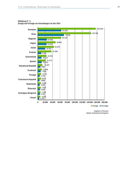 II. Zu- und Abwanderung – Wanderungen von Unionsbürgern 77 Abbildung II - 5: Zuzüge und Fortzüge von Unionsbürgern im Jahr 2014 Rumänien 156.440 63.363 Polen 143.760 70.700 Bulgarien 63.140 24.466 Ungarn 48.063 23.679 Italien 43.676 19.702 Kroatien 37.060 9.416 Griechenland 23.361 10.127 Spanien 21.375 10.352 Slowakische Republik 12.567 7.082 Frankreich 11.058 7.934 Portugal 9.175 5.219 Tschechische Republik 8.971 4.868 Niederlande 8.350 5.404 Österreich 7.925 5.948 Vereinigtes Königreich 7.401 5.782 Litauen 6.832 3.764 0 20.000 40.000 60.000 80.000 100.000 120.000 140.000 160.000 180.000 Zuzüge Fortzüge Angaben in Personen Quelle: Ausländerzentralregister