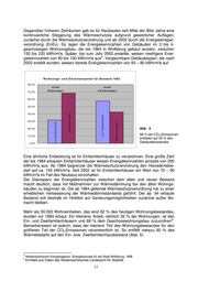 Gegenüber früheren Zeiträumen gab es für Neubauten seit Mitte der 80er Jahre eine kontinuierliche Steigerung des Wärmeschutzes aufgrund gesetzlicher Auflagen, zunächst durch die Wärmeschutzverordnung und ab 2002 durch die Energieeinspar- verordnung (EnEv). So lagen die Energiekennzahlen von Gebäuden im 3 bis 4- geschossigen Wohnungsbau, die bis 1984 in Wolfsburg gebaut wurden, zwischen 150 bis 220 kWh/m²a. Später, bis zum Jahr 2002 erstellte, weisen niedrigere Ener- 5 giekennzahlen von 80 bis 100 kWh/m²a aus . Vergleichbare Gebäudetypen, die nach 2002 erstellt wurden, wiesen bereits Energiekennzahlen von 50 – 80 kWh/m²a auf. W o h n u n g s - u n d E m is s io n s a n te il fü r B e s ta n d 1 9 8 3 8 0 ,0 % A n te il A n te il 7 0 ,0 % W ohnungen C O 2 -E m is s io n 6 0 ,0 % 5 0 ,0 % 4 0 ,0 % M iet w ohnungen E in-/Z w eifam ilienh. 3 0 ,0 % E in-/Z w eifam ilienh. M iet w ohnungen 2 0 ,0 % Abb. 5 1 0 ,0 % 58 % der CO2-Emissionen entfallen auf 32 % des 0 ,0 % Gebäudebestandes Eine ähnliche Entwicklung ist für Einfamilienhäuser zu verzeichnen. Eine große Zahl der bis 1984 erbauten Einfamilienhäuser weisen Energiekennzahlen jenseits von 200 kWh/m²a aus. Ab 1984 begrenzte die Wärmeschutzverordnung den Heizwärmebe- darf auf ca. 140 kWh/m²a. Seit 2002 ist für Einfamilienhäuser ein Wert von 70 – 90 kWh/m²a im Fall des Neubaus einzuhalten. Die Diskrepanz der Energiekennzahlen zwischen dem alten und neuen Bestand macht deutlich, dass mit Maßnahmen zur Wärmedämmung bei den alten Wohnge- bäuden zu beginnen ist. Die ab 1984 geltende Wärmeschutzverordnung hat zu einer erheblichen Verbesserung der Wärmedämmstandards geführt. Der ab `84 erbaute Bestand soll deshalb im Hinblick auf Sanierungsmöglichkeiten zunächst außer Be- tracht bleiben. Mehr als 50.000 Wohneinheiten, das sind 82 % des heutigen Wohnungsbestandes, wurden vor 1984 erbaut. Ein kleinerer Anteil, nämlich 32 % der Wohnungen, ist den 6 Ein- und Zweifamilienhäusern und 68 % dem Geschosswohnungsbau zuzuordnen . Bemerkenswert ist jedoch, dass der kleinere Teil des Wohnungsbestandes für den größeren Teil der CO2-Emissionen verantwortlich ist. So entfällt nahezu 60 % des Wärmebedarfs auf den Ein- bzw. Zweifamilienhausbestand (Abb. 5). 5 Niedersächsische Energieagentur, Energiekonzept für die Stadt Wolfsburg, 1998 6 Ermittelt aus Daten des Niedersächsisches Landesamt für Statistik 11