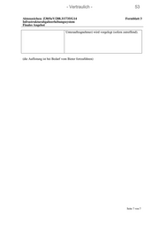 - Vertraulich - 52 Aktenzeichen: Z30/SeV/288.3/1735/G14 Formblatt 3 Infrastrukturabgabeerhebungssystem Finales Angebot Unterauftragnehmer) wird vorgelegt (sofern zutreffend). Unterauftragnehmer 5 Name, Anschrift: Sitz/Ort der Hauptniederlassung und - sofern einschlägig - Angaben zur Handelsregistereintragung (Registerge- richt, Abteilung, Nummer) 1. Angaben zum vorgesehenen von zu übernehmenden Leistungen, Unterauftragnehmervertrag: von der vorgesehenen Vertragslaufzeit des voraussichtlichen einmaligen oder jährlichen Auf- tragswerts einmalig: jährlich: 2. Vorgelegte Unterlagen: Erklärung(en) über das Nichtvorliegen von Ausschluss- gründen beim vorgesehenen Unterauftragnehmer des Be- treibers: Formblatt 4 wird vorgelegt Die Erklärung zum Nichtvorliegen von Ausschluss- gründen wurde bereits mit dem Teilnahmeantrag (Form- blatt 11) oder mit dem Erstangebot (Formblatt 4) durch das Unternehmen abgegeben. Weitere Erklärungen: Formblatt 5a der Bewerbungsbedingungen Finale Angebote (Verpflichtungserklärung des Unterauftrag- nehmers) wird vorgelegt. Formblatt 5b der Bewerbungsbedingungen Finale Angebote (Verpflichtungserklärung Mehrfachbeteiligung Seite 6 von 7
