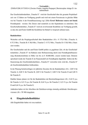 132 – Vertraulich – Z30/SeV/288.3/1735/G14 | Zweites Finales Angebot Paspagon | Businessplan Anlage D: An- nahmenbuch Das Gesellschafterdarlehen „Tranche E“ wird der Gesellschaft über die gesamte Projektlauf- zeit von 12 Jahren zur Verfügung gestellt und wird mit einem Festzinssatz in gleicher Höhe wie bei Tranche A der Fremdfinanzierung (vgl. Ziffer Error! Reference source not found. Fremdkapital) verzinst. Die Zinsen sind zusätzlich zu den Kapitalraten zu entrichten. Das Gesellschafterdarlehen „Tranche E“ wird als revolvierende Kreditlinie zur Verfügung gestellt, so dass die autoTicket GmbH die Kreditlinie bei Bedarf in Anspruch nehmen kann. Bankdarlehen Weiterhin soll die Projektgesellschaft über Bankdarlehen i.H.v. € 175,0 Mio. (Tranche A: € 57,5 Mio.; Tranche B: € 30,0 Mio.; Tranche C: € 57,5 Mio.; Tranche D: € 30,0 Mio.) finan- ziert werden. Die Gesellschafter und die autoTicket GmbH prüfen zu gegebener Zeit, ob das Gesellschaf- terdarlehen „Tranche E“ im Rahmen einer Refinanzierung durch eine Fremdkapitalfinanzie- rung (Kontokorrentlinie) in Höhe von bis zu € 30.000.000,- ersetzt werden kann. Dement- sprechend wurde die Tranche E im Finanzmodell als Fremdkapital abgebildet. Sofern die Re- finanzierung des Gesellschafterdarlehens „Tranche E“ verworfen wird, wird die „Tranche E“ als Gesellschafterdarlehen fortbestehen. In der Planung berücksichtigen wir jährliche Zinssätze für die Bankdarlehen i.H.v. 2,00 % für Tranche A, 0,80 % für Tranche B, 2,00 % für Tranche C, 0,80 % für Tranche D und 2,00 % für Tranche E. Darüber hinaus planen wir für die Bankdarlehen mit Bereitstellungszinsen i.H.v. 0,44 % p.a. für Tranche A, 0,21 % p.a. für Tranche B, 0,44 % p.a. für Tranche C, 0,21 % p.a. für Tranche D und 0,44 % p.a. für Tranche E. Außerdem haben wir bei Abschluss der Darlehensverträge einmalig anfallende Abschlusspro- visionen i.H.v. T€ 900 eingeplant. 4. Eingabetabellenblätter Alle Eingabefelder haben wir rosa markiert. Seite 15 von 28