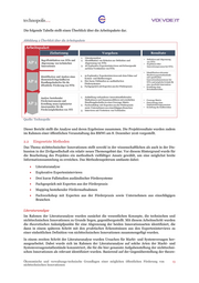 Die folgende Tabelle stellt einen Überblick über die Arbeitspakete dar. Abbildung 2 Überblick über die Arbeitspakete Arbeitspaket Zielsetzung Vorgehen Resultate 1. Literaturanalyse • Definition und Abgrenzung Begriffsdefinition von NTIs und 2. Identifikation von Kriterien zur Definition und AP 1 Abgrenzung von technischen Abgrenzung von NTIs • von NTIs Ergebnisse über Innovationen 3. 18 Explorative Experteninterviews mit Schwerpunkt Innovationsprozesse bei NTIs auf dem Verständnis von NTIs • Identifikation relevanter 1. 19 Explorative Experteninterviews mit dem Fokus auf Marktversagenstatbestände Identifikation und Analyse eines und spezifischen System- und Marktversagen ökonomisch begründbaren Innovationshemmnissen bei AP 2 Handlungsbedarfes für die 2. Drei kurze Fallstudien zu ausländischen Fördersystemen NTIs und mögliche Gründe für öffentliche Förderung von NTIs eine staatliche Intervention 3. Fachgespräch mit Experten aus der Förderpraxis • Erstellung eines Zwischenberichtes Analyse bestehender 1. Aufstellung vorhandener innovationsfördernder Maßnahmen und Zusammenführen mit ermittelten • Coverage Matrix Förderinstrumente und AP 3 Erstellung neuer/optimierter Handlungsbedarfen in einer Coverage-Matrix 2. Fachworkshop mit Experten aus der Förderpraxis • Entwicklung eines Implementierungsansatzes Ansatzpunkte für die sowie Unternehmen aus einschlägigen Branchen • Erstellung des Endberichtes Fördermöglichkeiten von NTI 3. Interviews mit Vertretern von Verbänden Quelle: Technopolis Dieser Bericht stellt die Analyse und deren Ergebnisse zusammen. Die Projektresultate wurden zudem im Rahmen einer öffentlichen Veranstaltung des BMWi am 8. Dezember 2016 vorgestellt. 2.2 Eingesetzte Methoden Das Thema nichttechnischer Innovationen stellt sowohl in der wissenschaftlichen als auch in der Dis- kussion in der Zivilgesellschaft ein relativ neues Themengebiet dar. Vor diesem Hintergrund wurde für die Bearbeitung des Projektes ein methodisch vielfältiger Ansatz gewählt, um eine möglichst breite Informationssammlung zu erreichen. Das Methodenspektrum umfasste dabei: • Literaturanalyse • Explorative Experteninterviews • Drei kurze Fallstudien ausländischer Fördersysteme • Fachgespräch mit Experten aus der Förderpraxis • Mapping bestehender Fördermaßnahmen • Fachworkshop mit Experten aus der Förderpraxis sowie Unternehmen aus einschlägigen Branchen Literaturanalyse Im Rahmen der Literaturanalyse wurden zunächst die wesentlichen Konzepte, die technischen und nichttechnischen Innovationen zu Grunde liegen, gegenübergestellt. Mit diesem Arbeitsschritt wurden die theoretischen Anknüpfpunkte für eine Abgrenzung der beiden Innovationsarten identifiziert, die dann in einem späteren Schritt mit den praktischen Erkenntnissen aus den Experteninterviews zu einer einheitlichen Definition von nichttechnischen Innovationen zusammengefügt wurden. In einem zweiten Schritt der Literaturanalyse wurden Ursachen für Markt- und Systemversagen her- ausgearbeitet. Dabei wurde sich im Rahmen der Literaturanalyse auf solche Arten der Markt- und Systemversagenstatbestände konzentriert, die für die hier genannte Aufgabenstellung der nichttechni- schen Innovationen als relevant identifiziert wurden. Basierend auf der Gegenüberstellung der theore- Ökonomische und verwaltungs-technische Grundlagen einer möglichen öffentlichen Förderung von 13 nichttechnischen Innovationen