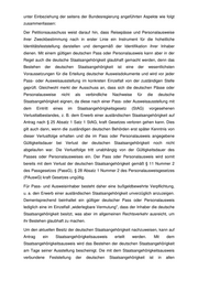 unter Einbeziehung der seitens der Bundesregierung angeführten Aspekte wie folgt zusammenfassen: Der Petitionsausschuss weist darauf hin, dass Reisepässe und Personalausweise ihrer Zweckbestimmung nach in erster Linie ein Instrument für die hoheitliche Identitätsfeststellung darstellen und demgemäß der Identifikation ihrer Inhaber dienen. Mit einem gültigen deutschen Pass oder Personalausweis kann aber in der Regel auch die deutsche Staatsangehörigkeit glaubhaft gemacht werden, denn das Bestehen der deutschen Staatsangehörigkeit ist eine der wesentlichsten Voraussetzungen für die Erteilung deutscher Ausweisdokumente und wird vor jeder Pass- oder Ausweisausstellung im konkreten Einzelfall von der zuständigen Stelle geprüft. Gleichwohl merkt der Ausschuss an, dass sich die deutschen Pässe oder Personalausweise nicht als verbindliche Nachweise für die deutsche Staatsangehörigkeit eignen, da diese nach einer Pass- oder Ausweisausstellung mit dem Eintritt eines im Staatsangehörigkeitsgesetz (StAG) vorgesehenen Verlusttatbestandes, z. B. dem Erwerb einer ausländischen Staatsangehörigkeit auf Antrag nach § 25 Absatz 1 Satz 1 StAG, kraft Gesetzes verloren gehen kann. Dies gilt auch dann, wenn die zuständigen deutschen Behörden erst später Kenntnis von dieser Verlustfolge erhalten und die im Pass oder Personalausweis angegebene Gültigkeitsdauer bei Verlust der deutschen Staatsangehörigkeit noch nicht abgelaufen war. Die Verlustfolge tritt unabhängig von der Gültigkeitsdauer des Passes oder Personalausweises ein. Der Pass oder Personalausweis wird somit bereits mit dem Verlust der deutschen Staatsangehörigkeit gemäß § 11 Nummer 2 des Passgesetzes (PassG), § 28 Absatz 1 Nummer 2 des Personalausweisgesetzes (PAuswG) kraft Gesetzes ungültig. Für Pass- und Ausweisinhaber besteht daher eine bußgeldbewehrte Verpflichtung, u. a. den Erwerb einer ausländischen Staatsangehörigkeit unverzüglich anzuzeigen. Dementsprechend beinhaltet ein gültiger deutscher Pass oder Personalausweis lediglich eine im Einzelfall „widerlegbare Vermutung", dass der Inhaber die deutsche Staatsangehörigkeit besitzt, was aber im allgemeinen Rechtsverkehr ausreicht, um ihr Bestehen glaubhaft zu machen. Um den aktuellen Besitz der deutschen Staatsangehörigkeit nachzuweisen, kann auf Antrag ein Staatsangehörigkeitsausweis erteilt werden. Mit dem Staatsangehörigkeitsausweis wird das Bestehen der deutschen Staatsangehörigkeit am Tage seiner Ausstellung bescheinigt. Die mit dem Staatsangehörigkeitsausweis verbundene Feststellung der deutschen Staatsangehörigkeit ist in allen