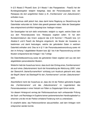 In § 5 Absatz 2 PAuswG (bzw. § 4 Absatz 1 des Passgesetzes - PassG) hat der Bundesgesetzgeber lediglich festgelegt, dass der Personalausweis bzw. der Reisepass die dort aufgeführten Daten (z. B. „Familienname“ und „Geburtsname“) enthalten muss. Der Ausschuss stellt jedoch fest, dass damit keine Regelung zur Bezeichnung der Datenfelder verbunden ist. Sofern dies gewollt gewesen wäre, hätte der Gesetzgeber dies entsprechend schriftlich festgelegt bzw. festlegen müssen. Der Gesetzgeber hat sich dafür entschieden, lediglich zu regeln, welche Daten sich aus dem Personalausweis bzw. Reisepass ergeben sollen. Er hat dem Bundesministerium des Innern aufgrund des § 34 Nummer 1 PAuswG bzw. § 4 Absätze 5 und 6 PassG die Befugnis eingeräumt, die Muster der Ausweise zu bestimmen und damit festzulegen, welche der geforderten Daten in welchem Datenfeld enthalten sind. Dies ist in § 11 der Personalausweisverordnung sowie mit den im Anhang 1 abgebildeten Mustern bzw. §§ 1 bis 4 der Passverordnung und den Mustern entsprechend den Anlagen 1 bis 7 erfolgt. Die Datenfeldbezeichnung sowie die geforderten Daten ergeben sich aus den dort abgebildeten personalisierten Mustern. Weiterhin hebt der Ausschuss hervor, dass durch den Eintrag eines „Familiennamens“ als auch eines „Geburtsnamens“ durch die Voranstellung der Abkürzung „GEB.“ unter der Überschrift „Name/Surname/Nom“ schlüssig zum Ausdruck gebracht wird, dass der Begriff „Name“ als Oberbegriff für den „Familiennamen“ und den „Geburtsnamen“ steht. Abschließend merkt der Ausschuss an, dass die mit der Petition geforderte Angabe des „Familiennamens“ und des „Geburtsnamens“ im Legendentext des Personalausweises in einer Vielzahl von Fällen zu Doppelungen führen würde. Vor diesem Hintergrund vermag der Petitionsausschuss nach umfassender Prüfung der Sach- und Rechtslage im Ergebnis keinen parlamentarischen Handlungsbedarf zu erkennen und die mit der Petition erhobene Forderung nicht zu unterstützen. Er empfiehlt daher, das Petitionsverfahren abzuschließen, weil dem Anliegen nicht entsprochen werden konnte.