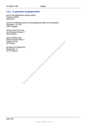 D1-2650/0-1350 Anlagen 7.2.3 In speziellen Angelegenheiten Amt für den Militärischen Abschirmdienst Postfach 100203 50442 Köln Zentrum für Militärgeschichte und Sozialwissenschaften der Bundeswehr Zeppelinstr. 127-128 14471 Potsdam Zentrum Innere Führung Von-Witzleben-Strasse 17 56076 Koblenz Zentrum Militärmusik Robert-Schuman-Platz 3 Postfach 53109 ! 53175 Bonn st en Bundesarchiv-Militärarchiv di gs Wiesentalstr. 10 ru 79115 Freiburg n de Än em td ic h tn eg terli un k us druc er A ie s D Seite 128 Stand: März 2015