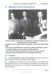 Stichworte zur Traditionsbildung und -pflege im Heer D1-2650/0-1350 6.3 Staatsbürger in Uniform und Innere Führung ! st en di gs ru n de Än em td ic h tn eg terli Verleihung „Freiherr vom Stein Preis“ am 10.02.1965 an (v.l.) die Generale de Maizière, Graf un von Baudissin und Graf von Kielmannsegg k us dr In Gesprächen über die eigene Tradition der Bundeswehr werden häufig folgende Fragen uc gestellt: er A • Kann der nach den Grundsätzen der Inneren Führung geführte „Staatsbürger in Uniform“, ie s der lediglich einen Beruf von vielen ausübt, eine Tradition begründen? D • Was ist denn das Besondere am Staatsbürger in Uniform und der Inneren Führung? • Warum hat man diese beiden Begriffe in den Traditionserlass aufgenommen? 6.3.1 Grundlagen 618. Die Begriffe Staatsbürger in Uniform und Innere Führung wurden 1952 und 1953 im Amt Blank, dem Vorläufer des späteren Verteidigungsministeriums, geprägt. 619. Ausgangspunkt war die äußerst kontrovers geführte Diskussion um die Bewaffnung der Bundesrepublik Deutschland, in der die Gründerväter der Bundeswehr von der Möglichkeit eines Bündnisses zwischen demokratischer Idee und soldatischer Notwendigkeit ausgingen (General a.D. Graf von Kielmansegg). Seite 37 Stand: März 2015