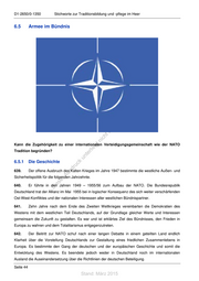 D1-2650/0-1350 Stichworte zur Traditionsbildung und -pflege im Heer 6.5 Armee im Bündnis st ! en di gs ru n de Än em td ic h tn Kann die Zugehörigkeit zu einer internationalen Verteidigungsgemeinschaft wie der NATO eg Tradition begründen? terli un 6.5.1 Die Geschichte k us 639. druc Der offene Ausbruch des Kalten Krieges im Jahre 1947 bestimmte die westliche Außen- und er Sicherheitspolitik für die folgenden Jahrzehnte. A 640. ie s Er führte in den Jahren 1949 – 1955/56 zum Aufbau der NATO. Die Bundesrepublik D Deutschland trat der Allianz im Mai 1955 bei in logischer Konsequenz des sich weiter verschärfenden Ost-West-Konfliktes und der nationalen Interessen aller westlichen Bündnispartner. 641. Zehn Jahre nach dem Ende des Zweiten Weltkrieges vereinbarten die Demokratien des Westens mit dem westlichen Teil Deutschlands, auf der Grundlage gleicher Werte und Interessen gemeinsam die Zukunft zu gestalten. Es war und ist erklärtes Ziel des Bündnisses, den Frieden in Europa zu wahren und dem Totalitarismus entgegenzutreten. 642. Der Beitritt zur NATO schuf nach einer langen Debatte in einem geteilten Land endlich Klarheit über die Vorstellung Deutschlands zur Gestaltung eines friedlichen Zusammenlebens in Europa. Es bestimmte den Gang der deutschen und der europäischen Geschichte und somit die Entwicklung des Westens. Es beendete jedoch weder in Deutschland noch im internationalen Ausland die Auseinandersetzung über die Richtlinien der deutschen Beteiligung. Seite 44 Stand: März 2015